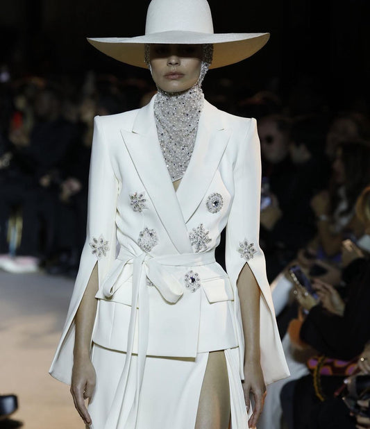 Long Sleeve Crystal Bow Blazer Dress Lavender