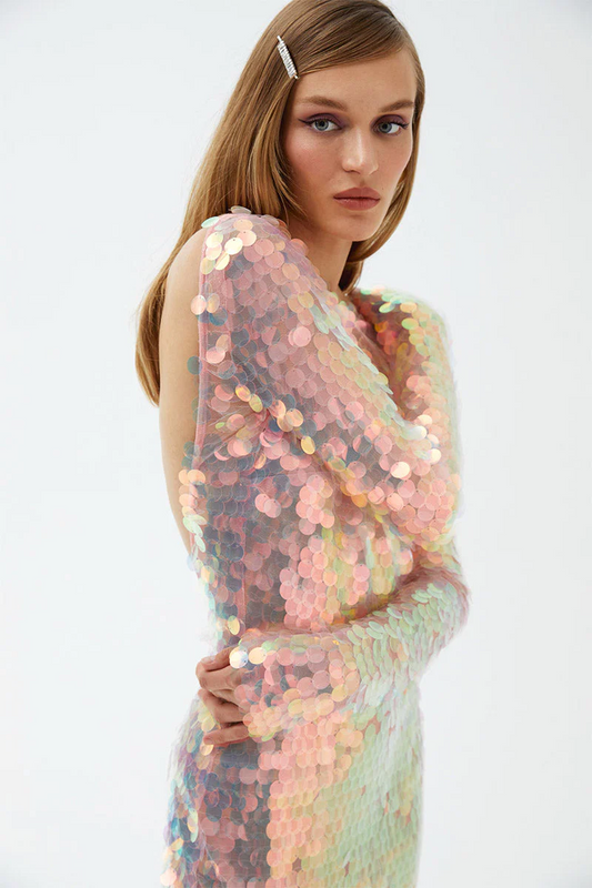 Long Sleeve Big Sequins Backless Maxi Dress Duochrome