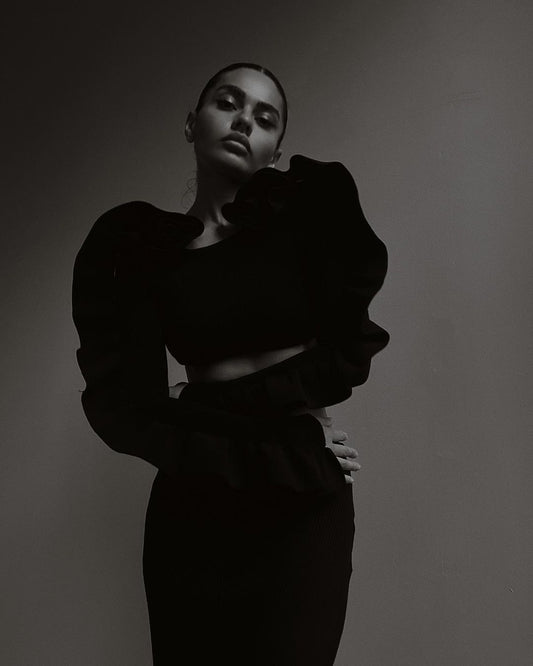 Ruffle Long Sleeve Two Piece Maxi Dress Black HV1030