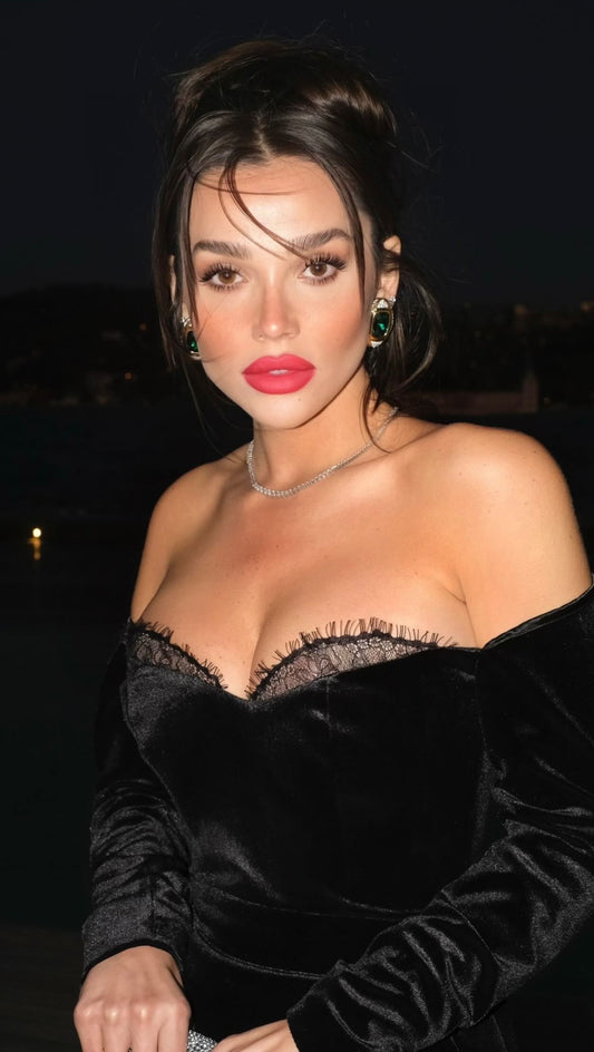 Long Sleeve Lace Insert Maxi Velvet Dress Black HV9962