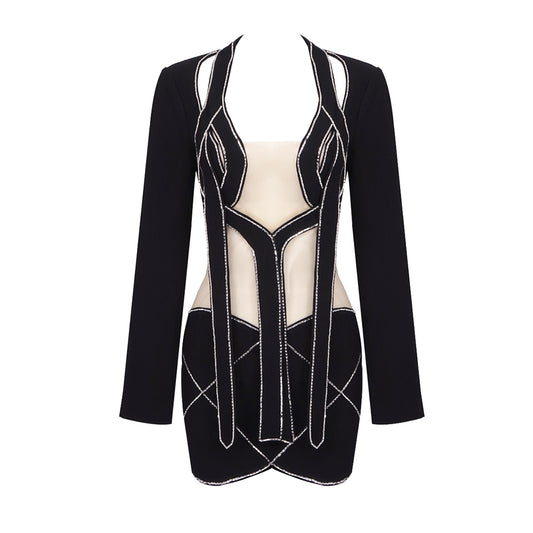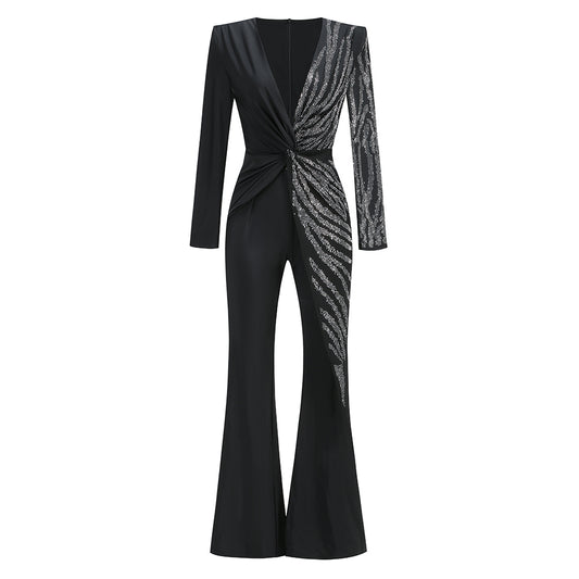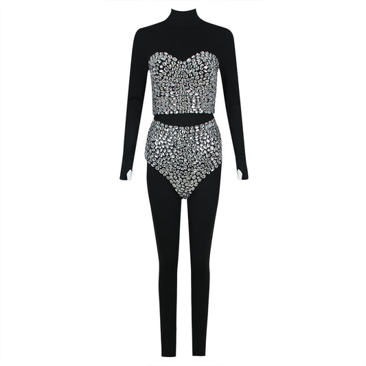 Long Sleeve Crystal Three Piece Jumpsuit HV1341