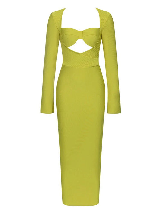 Long Sleeve Bustier Ribbed Midi Dress Green