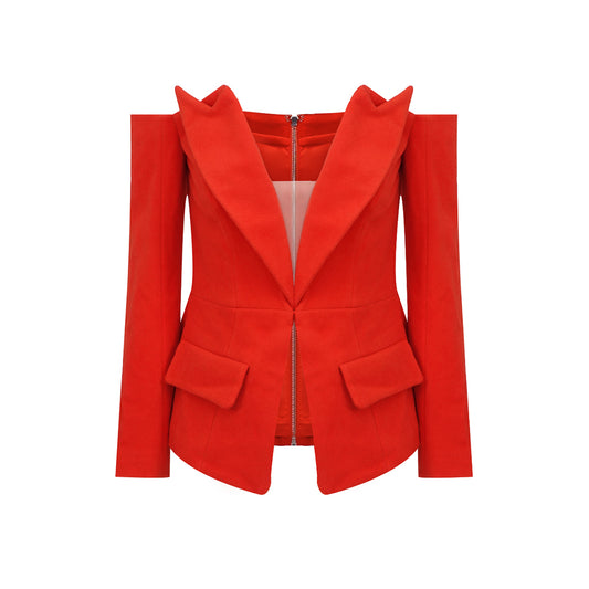 Long Sleeve Off Shoulder Blazer Red HV9943