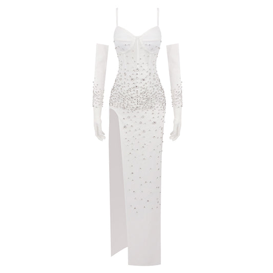 Long Sleeve Crystal Corset Draped Maxi HV1225
