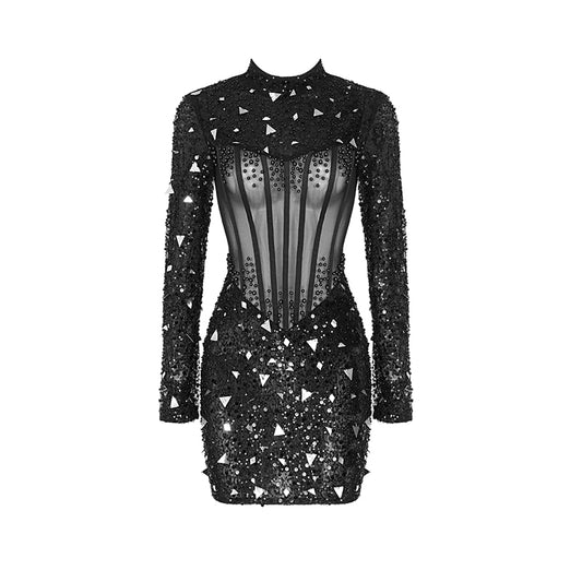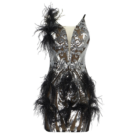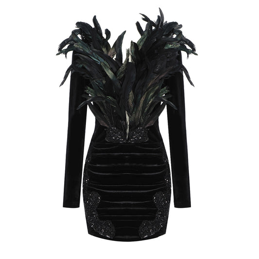 Feather Long Sleeve Bustier Dress HV9157