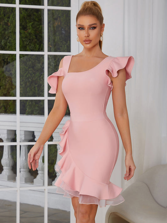 Ruffle Detail Dress Pink V9012