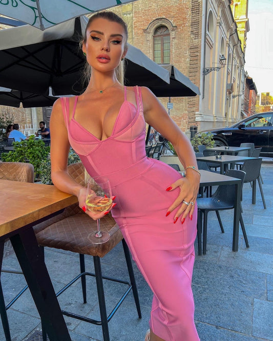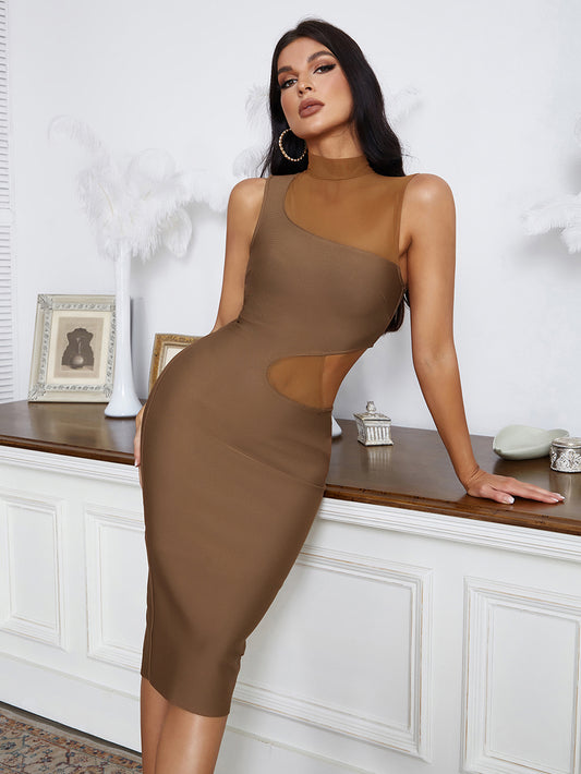 Long Sleeve Silver Trim Cut Out Midi Dress V8863