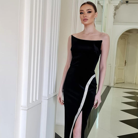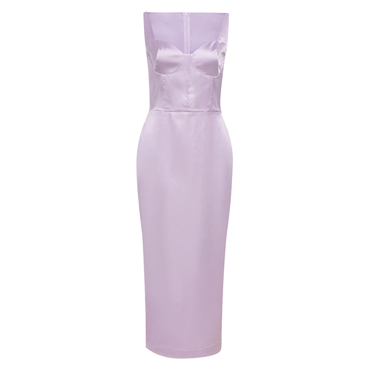 Strapless Silver Trim Midi Velvet Dress HV8881