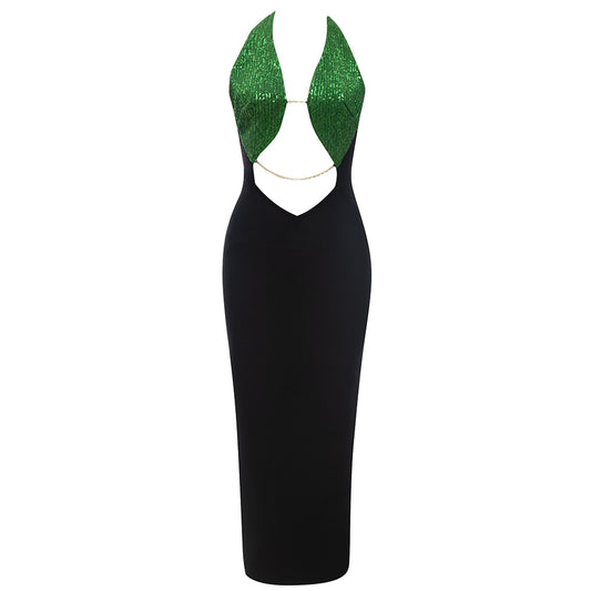 Halter Lace Insert Corset Midi Dress Black White HV8205