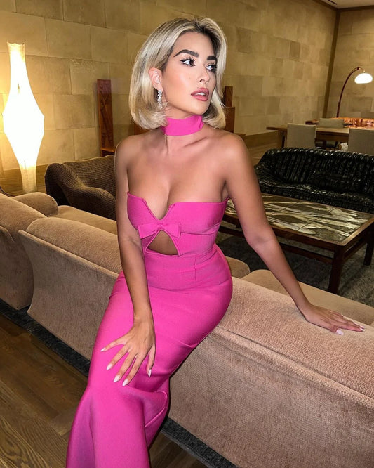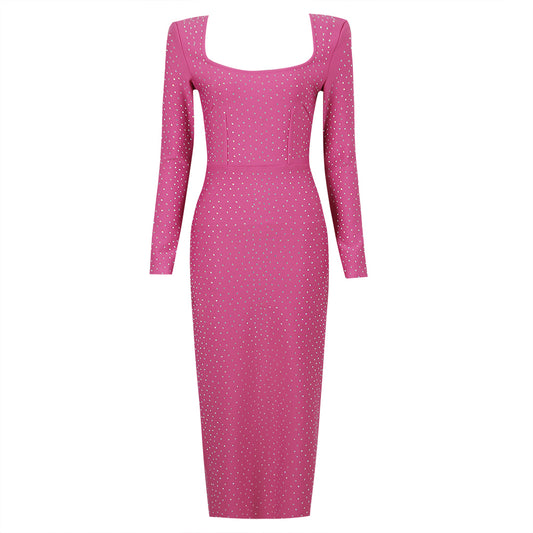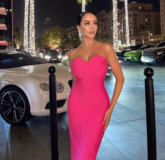 Pearl Strap Bardot Bustier Midi Dress HV6523
