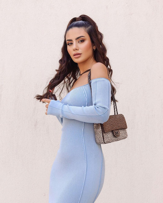Puff Off The Shoulder Midi Dress Blue HV8487