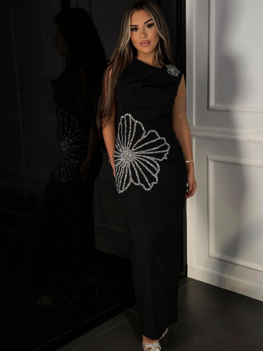 Crystal Floral Maxi Dress Black