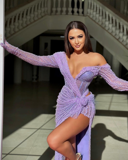 Long Sleeve Floral Sequin Maxi Dress Lavender HV1797