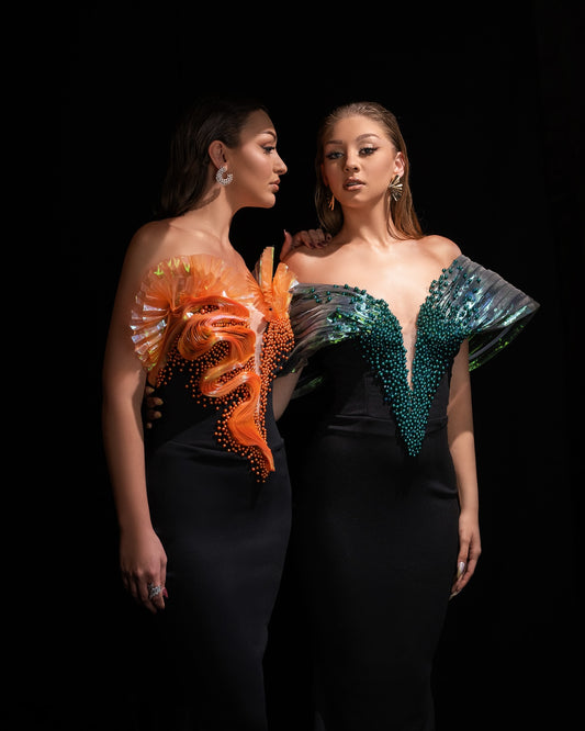 Long Sleeve Bardot Pearl Maxi Velvet Dress Black HV2093