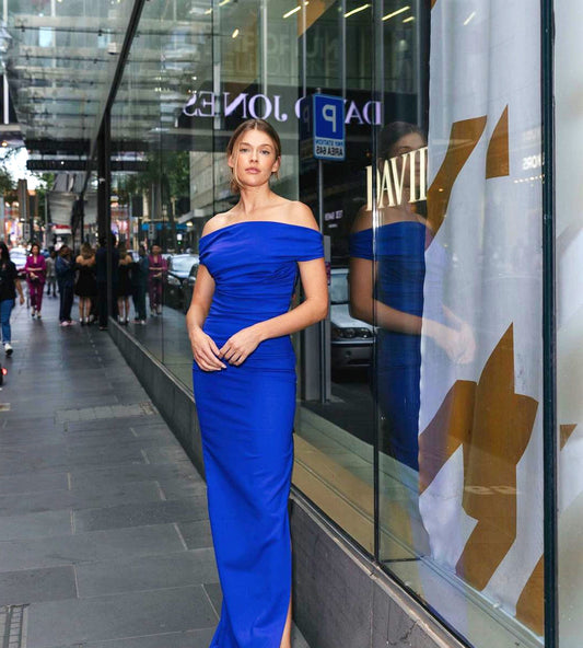 Long Sleeve Bardot Maxi Dress Nude HV2134