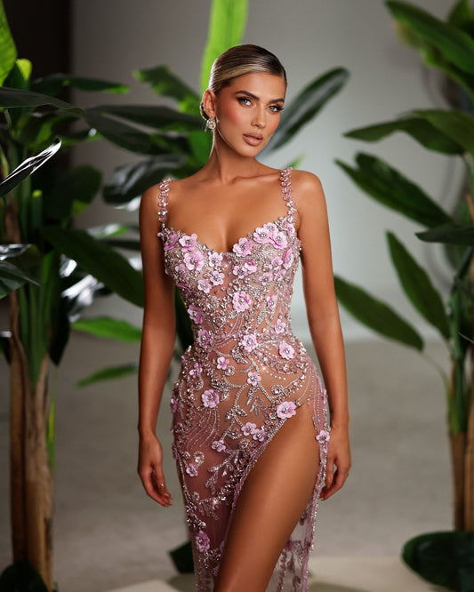 Strapless Crystal Sequin Maxi Dress Pink HV1914