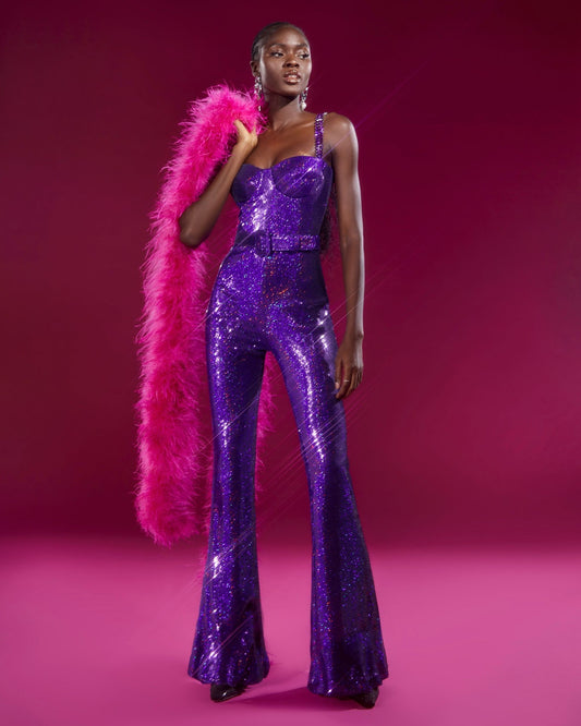 Bustier Sequin Jumpsuit Purple HV9977