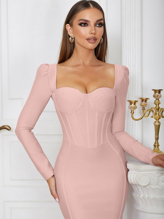 Long Sleeve Corset Design Midi Dress HV9755