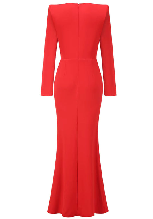 Long Sleeve Fluted Midi Two Piece Knitted Dress