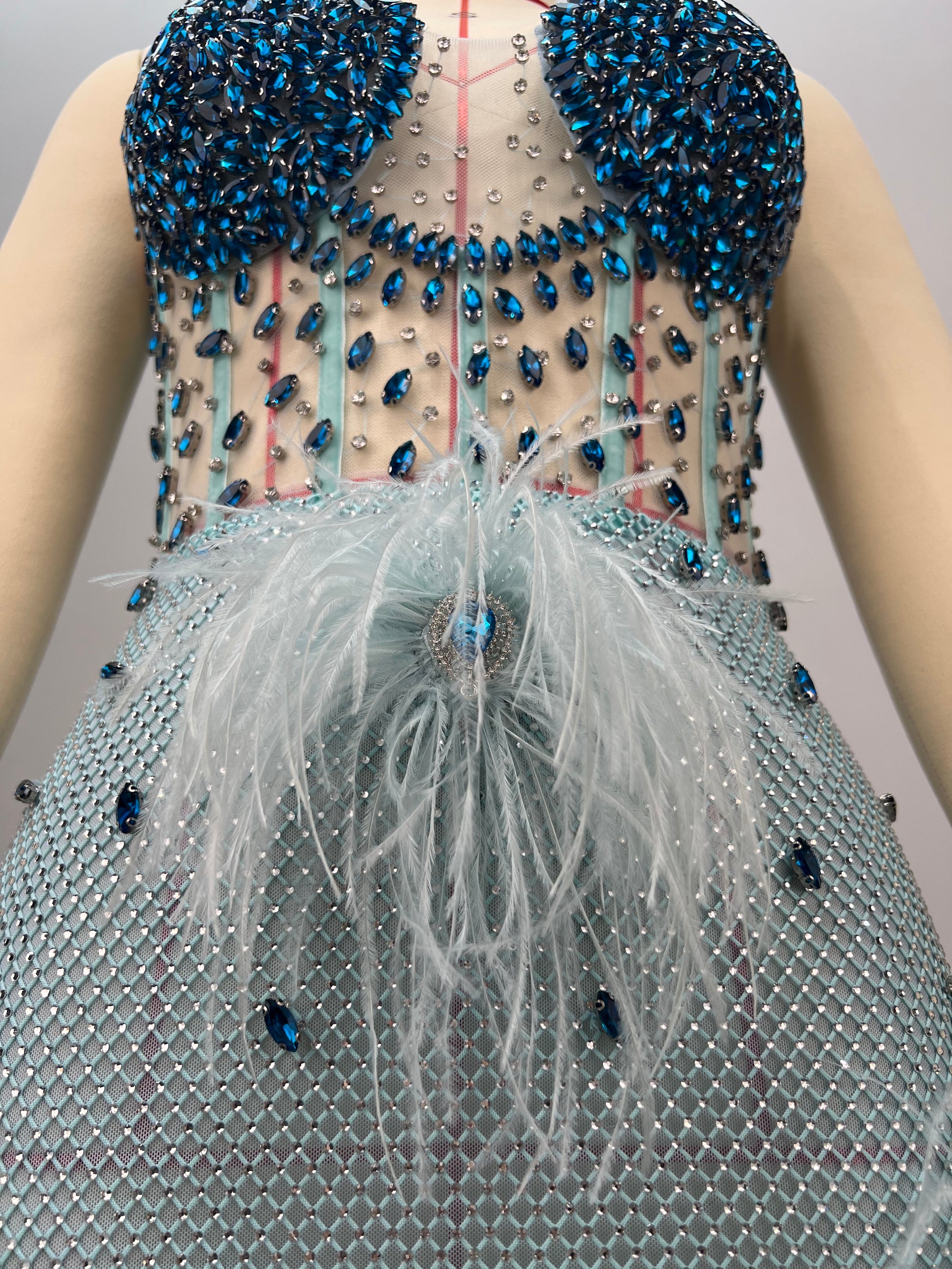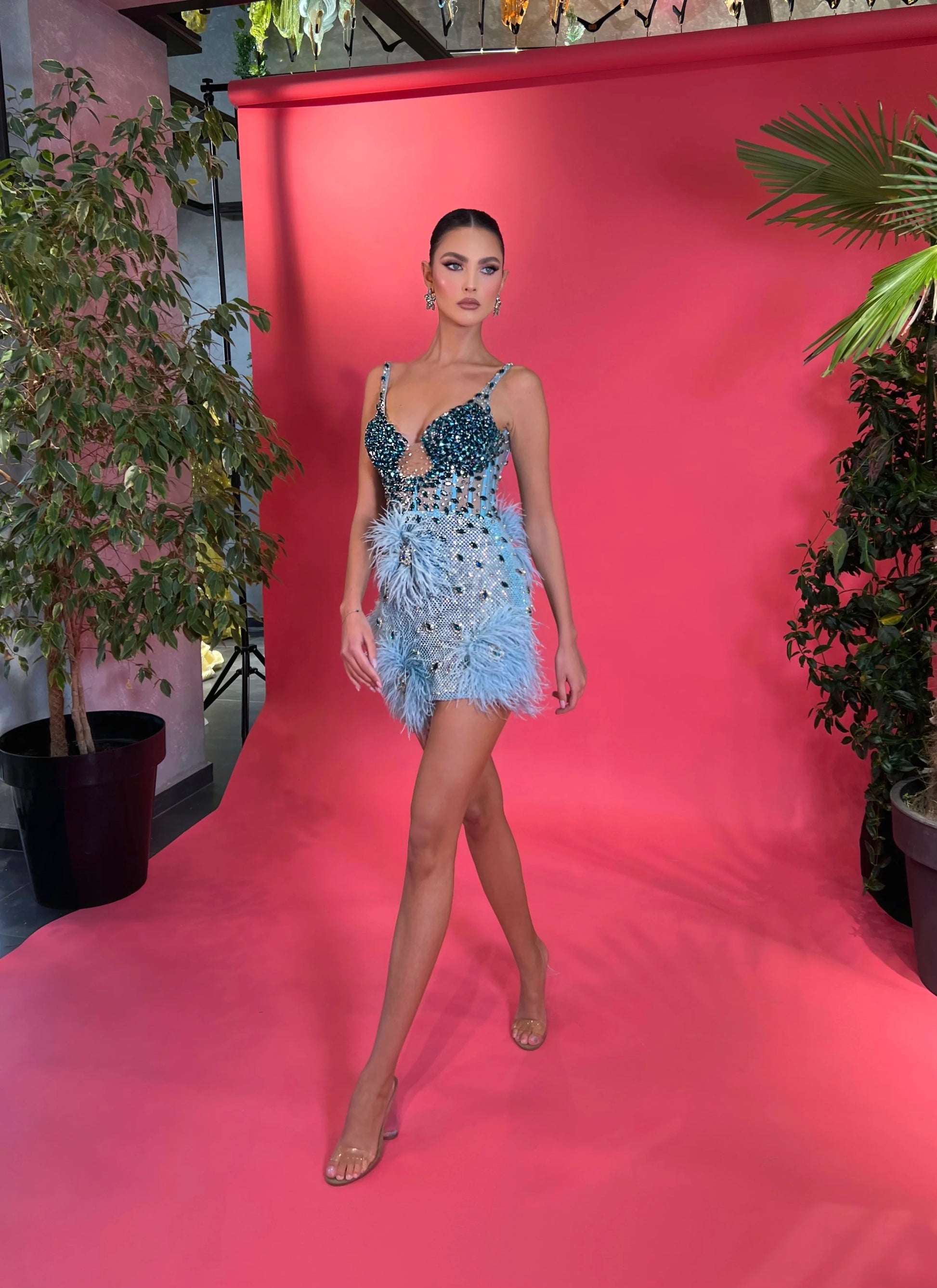 Crystal Bustier Feather Detail Dress Blue HV2192
