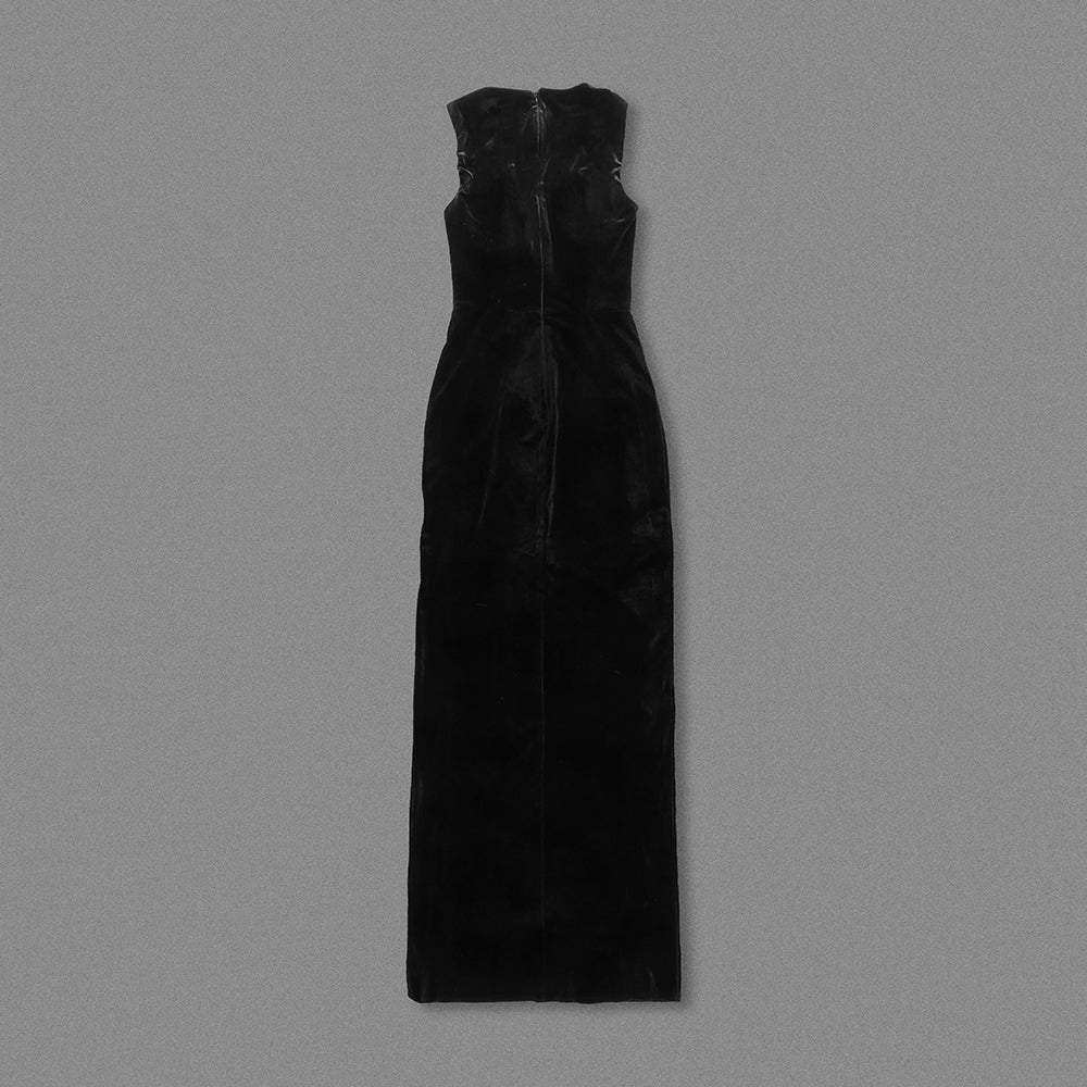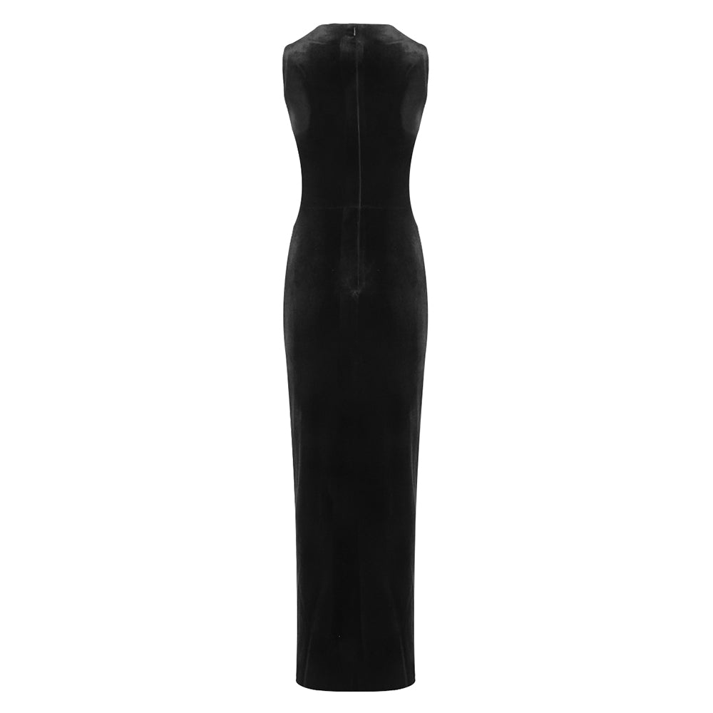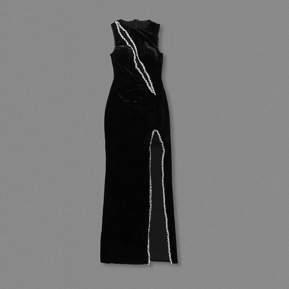 Crystal Mesh Insert Maxi Velvet Dress Black HV2092