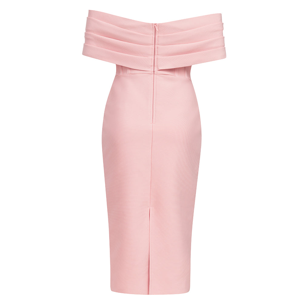 Draped Off Shoulder Structured Midi Dress Pink HV8586