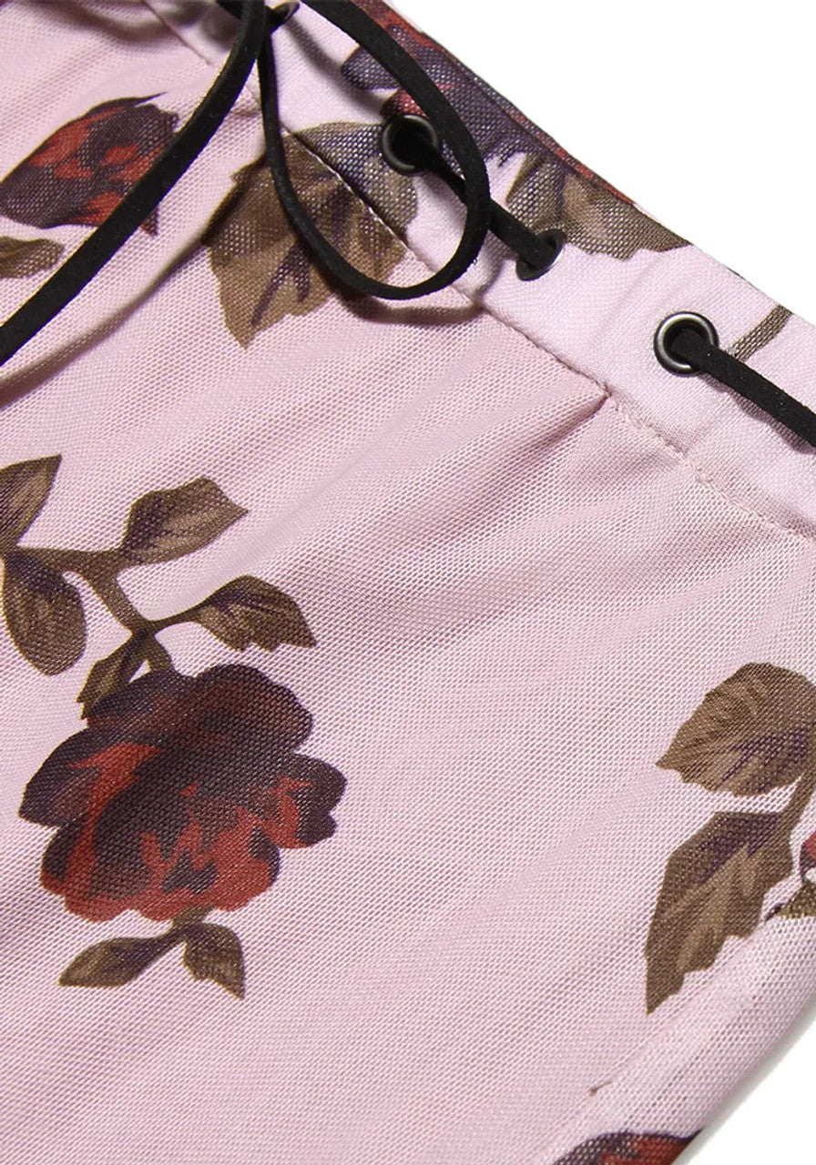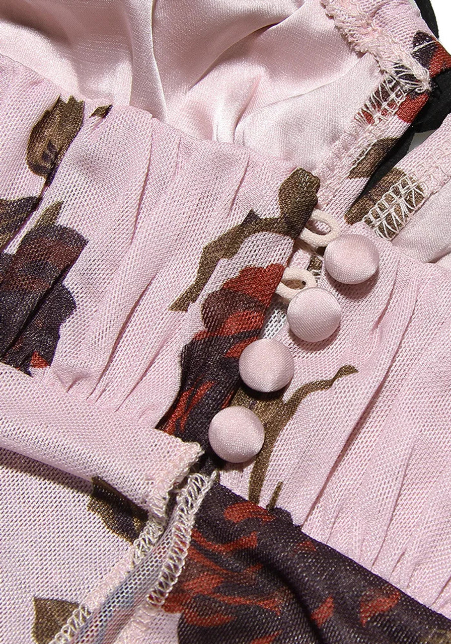 Floral Lace Bustier Two Piece Maxi Dress Pink