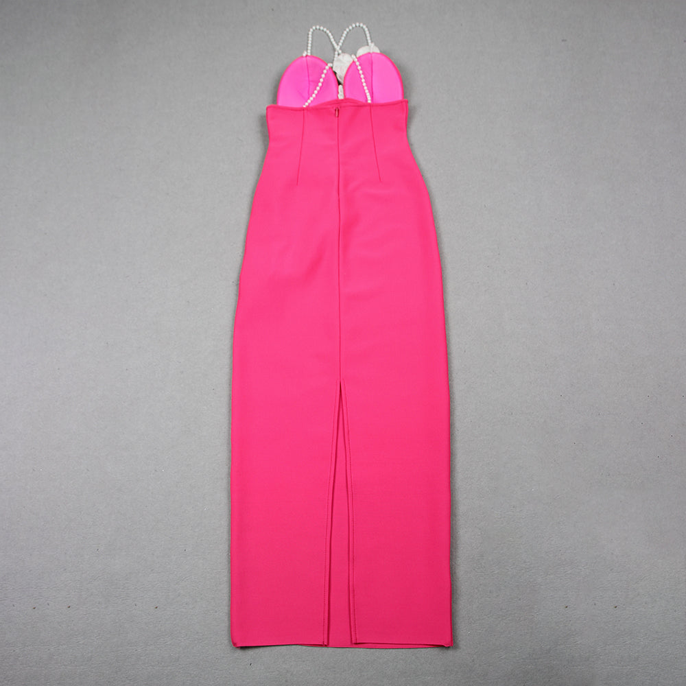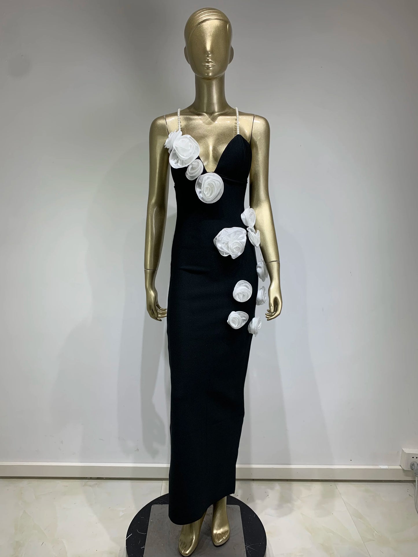 Flower Detail Pearl Straps Maxi Dress HV9874