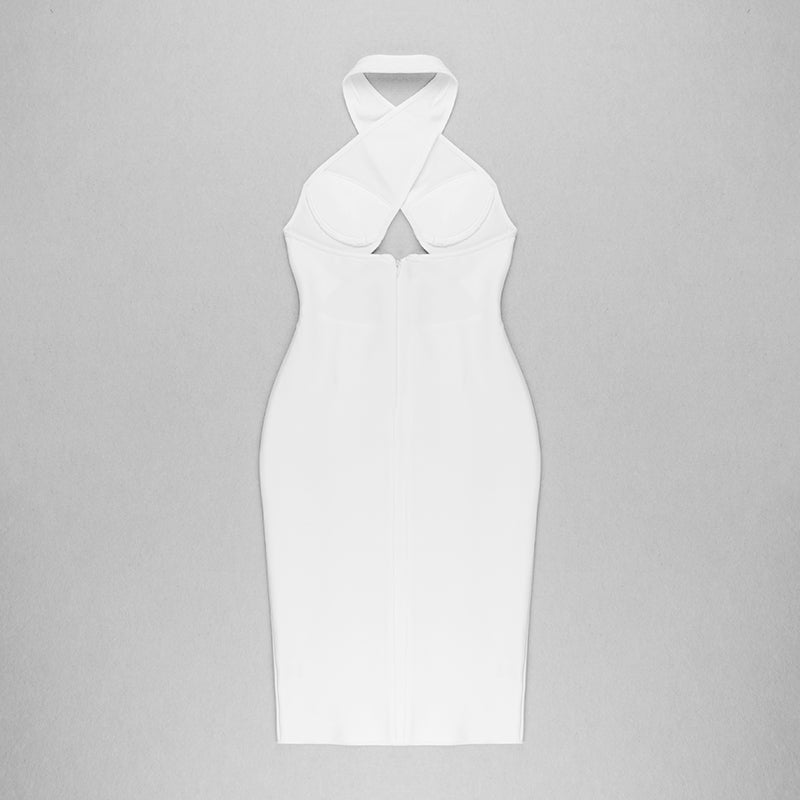 Halter Bustier Cross Over Dress White