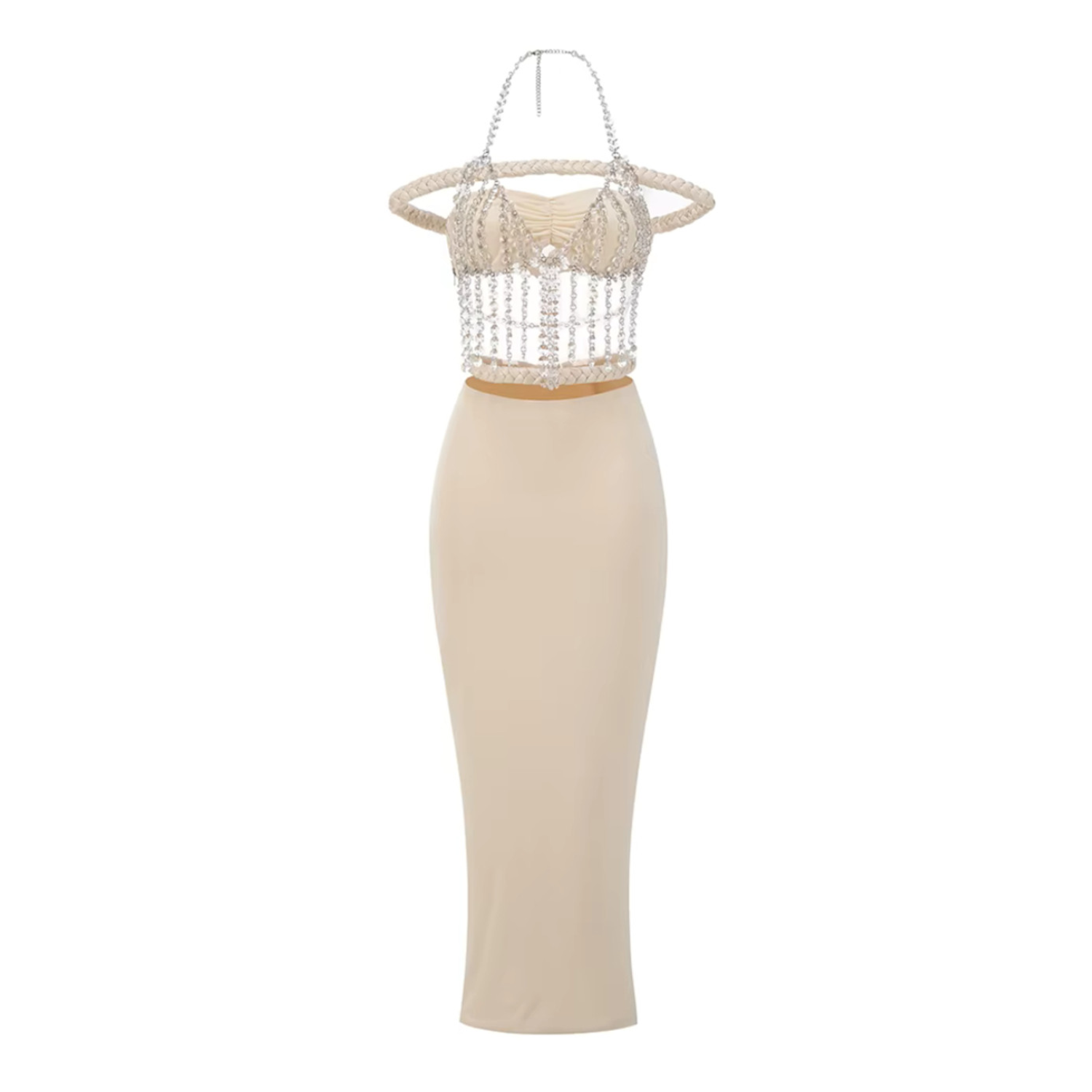Halter Crystal Bardot Maxi Dress Ivory