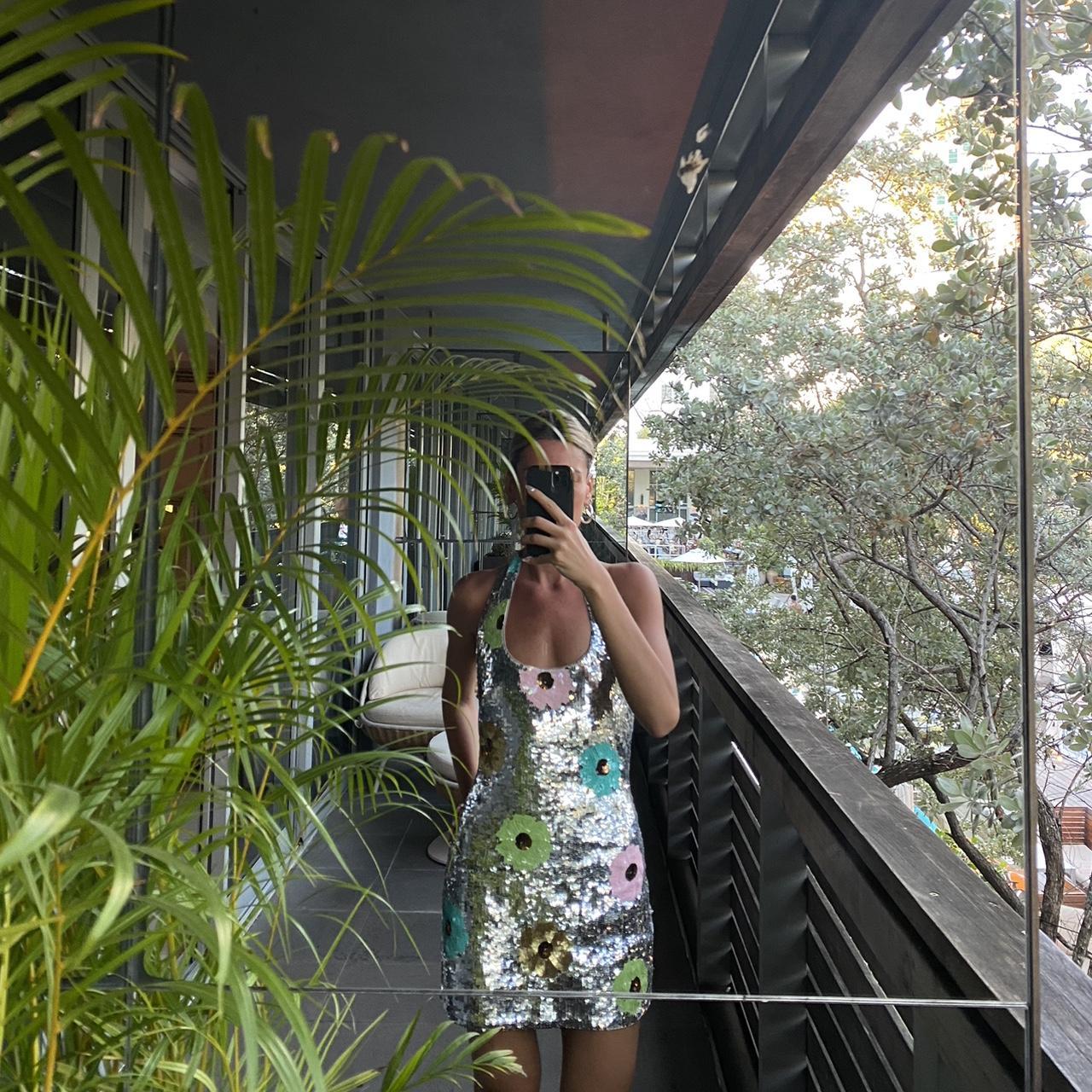 Halter Floral Sequin Dress Silver