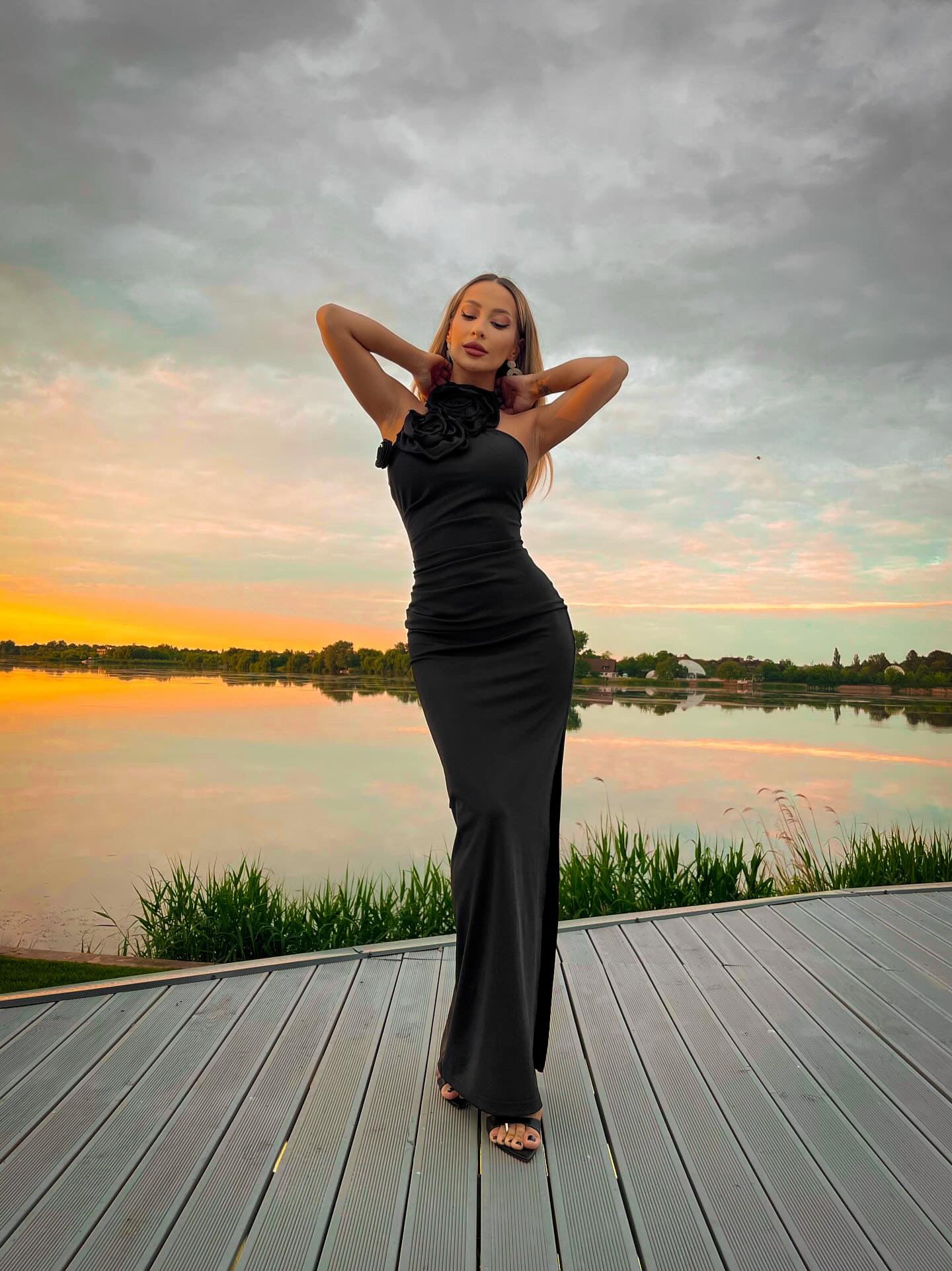 Halter Flower Detail Maxi Dress HV9571