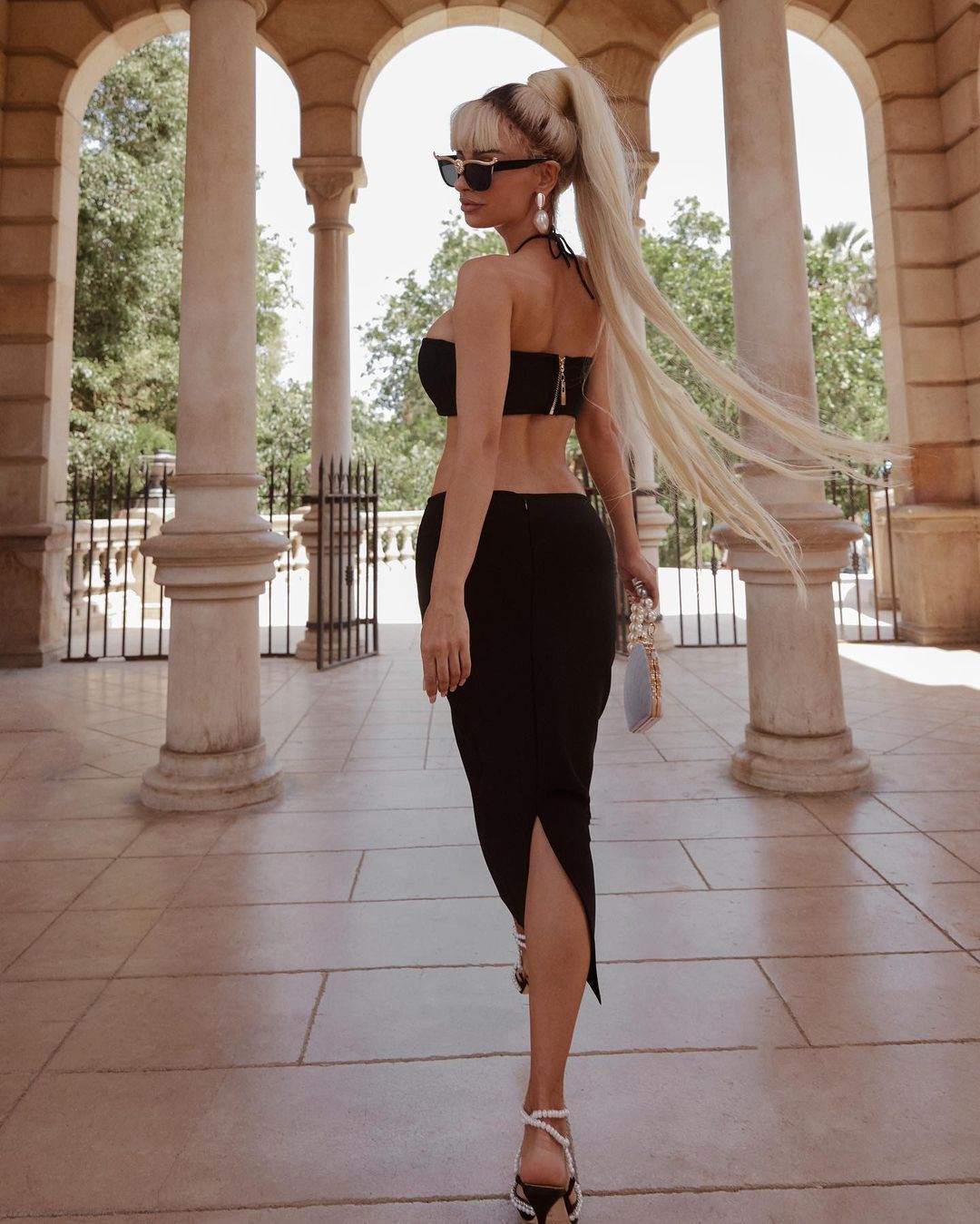 - Exposed zipper at back