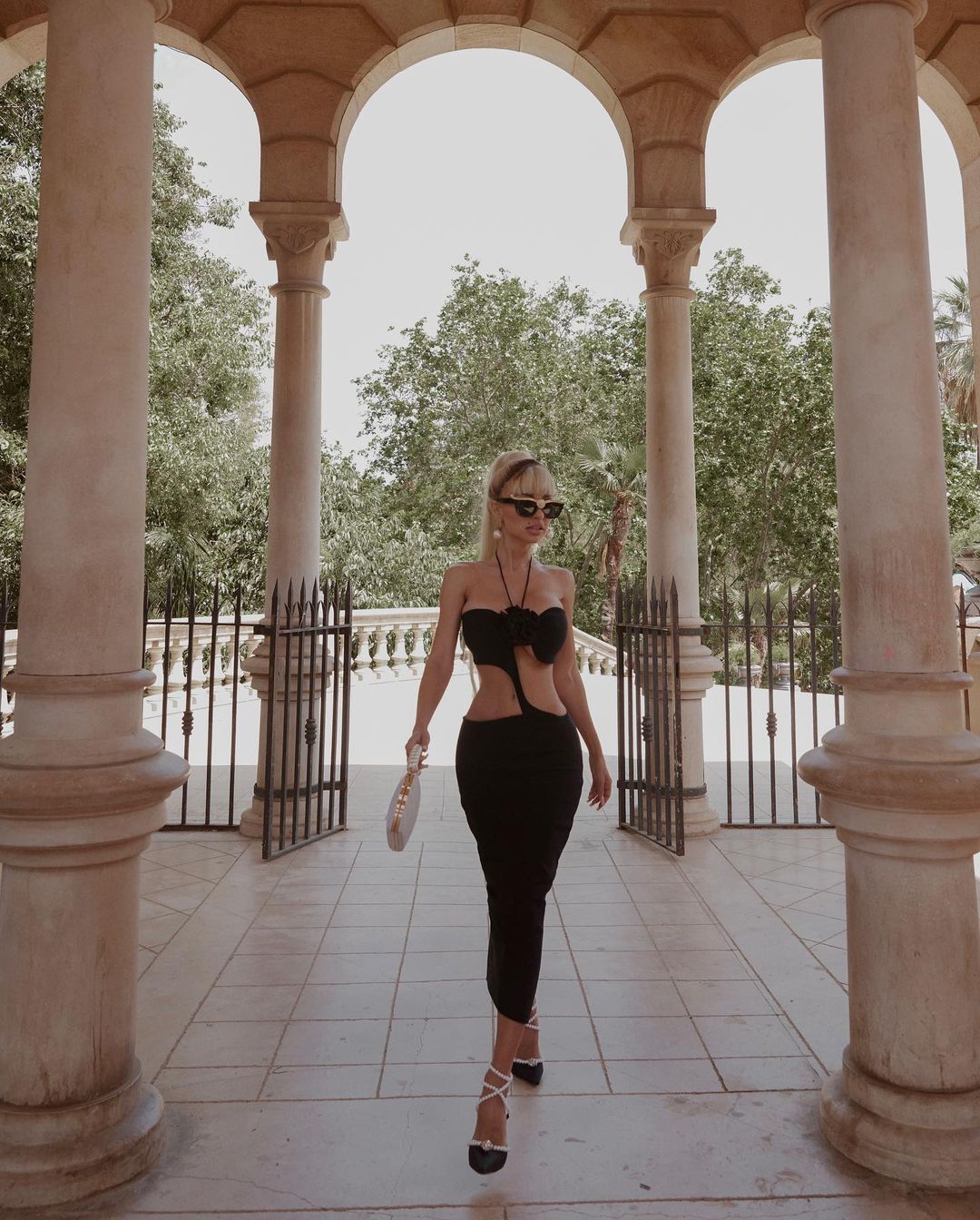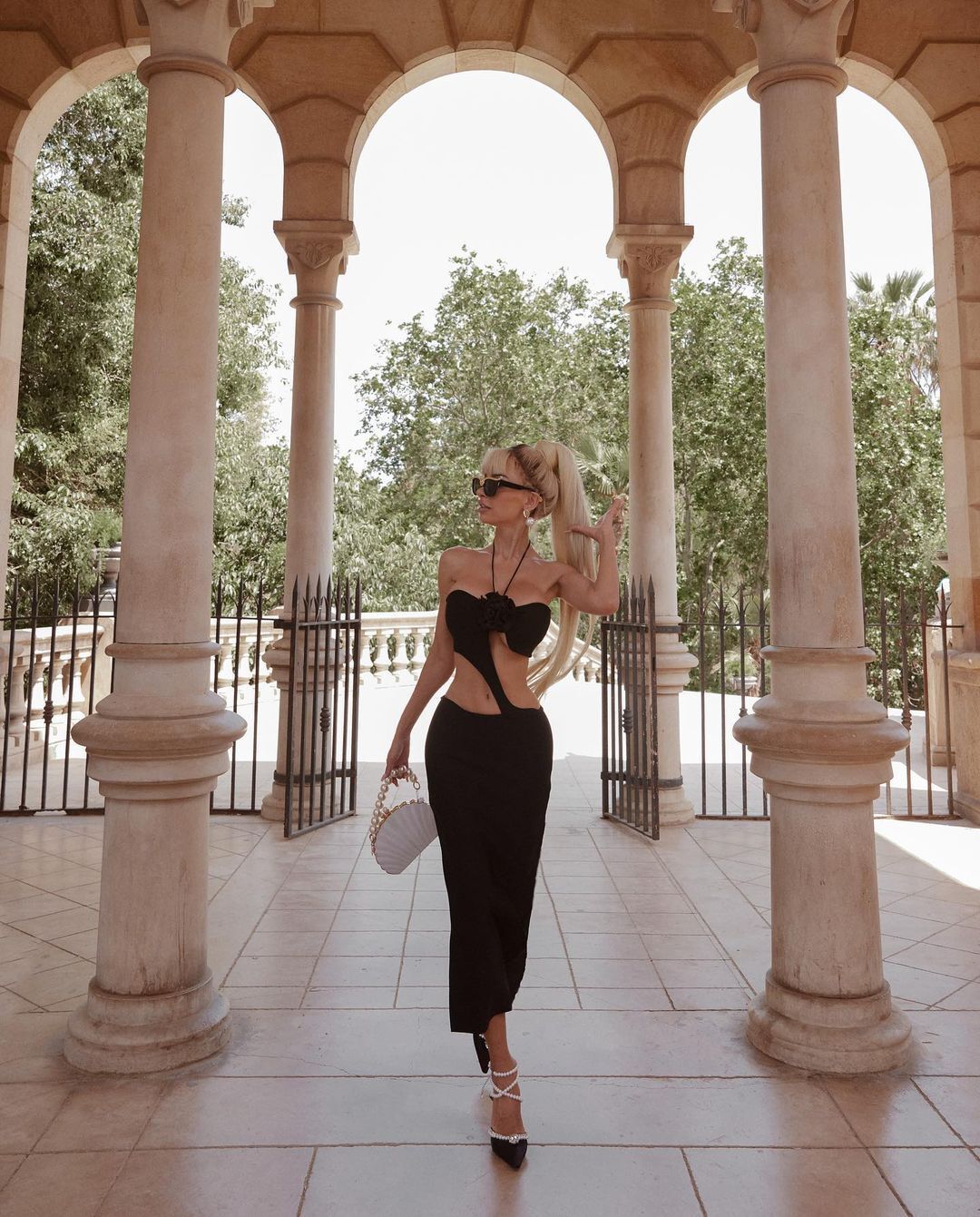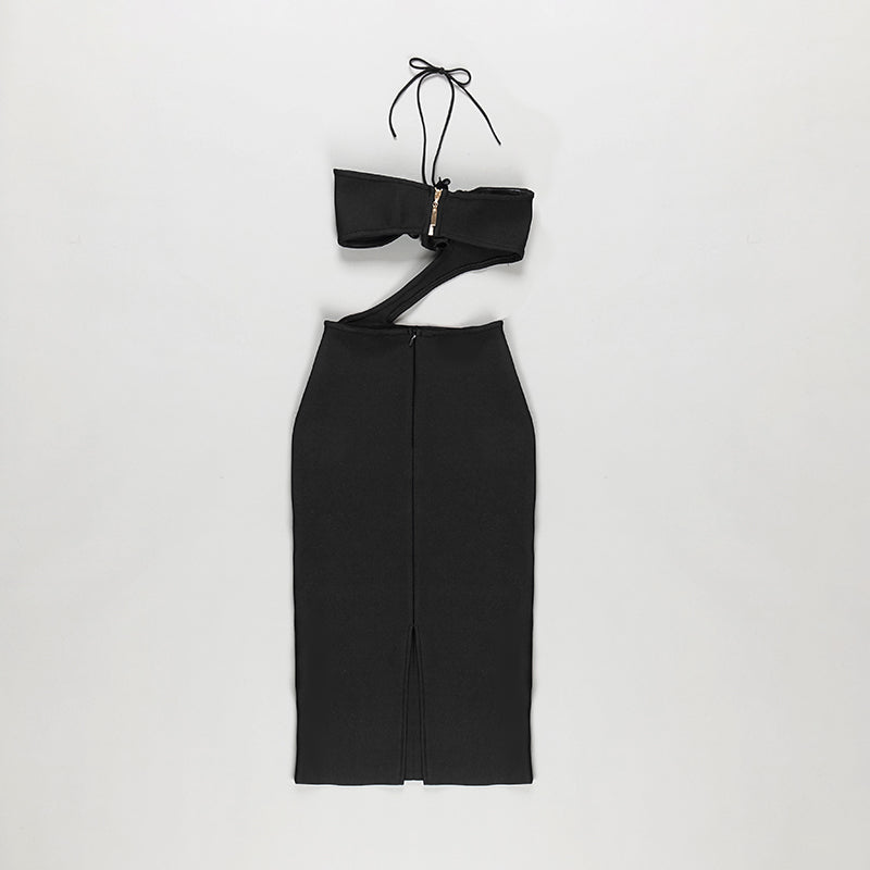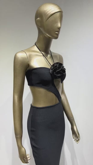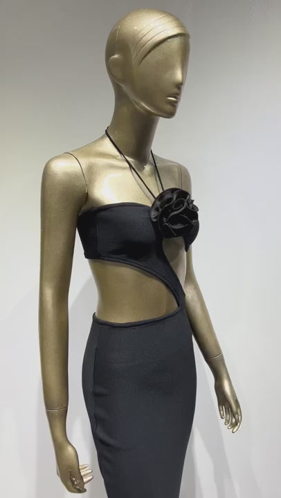Halter Flower Detail Midi Dress Black HV8456