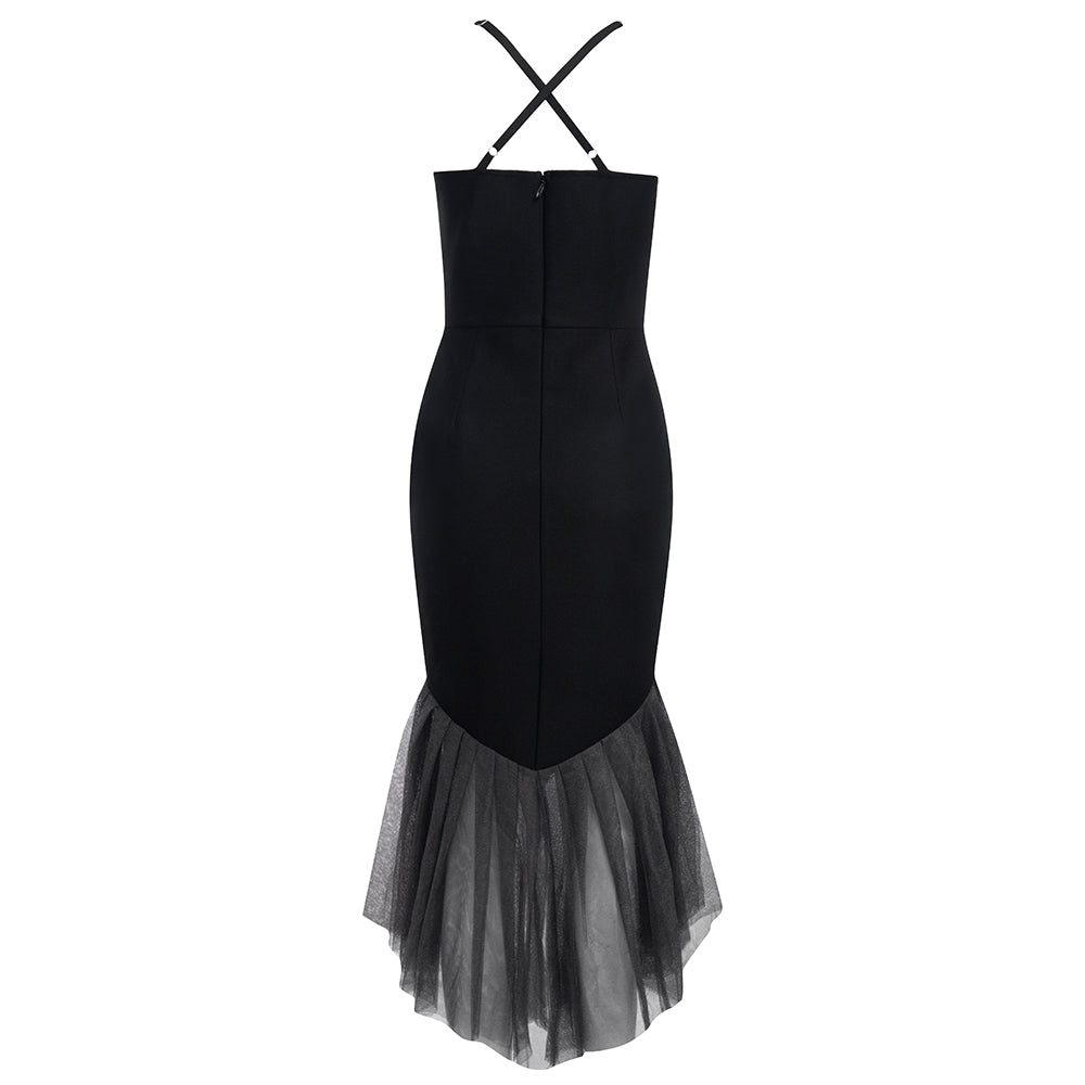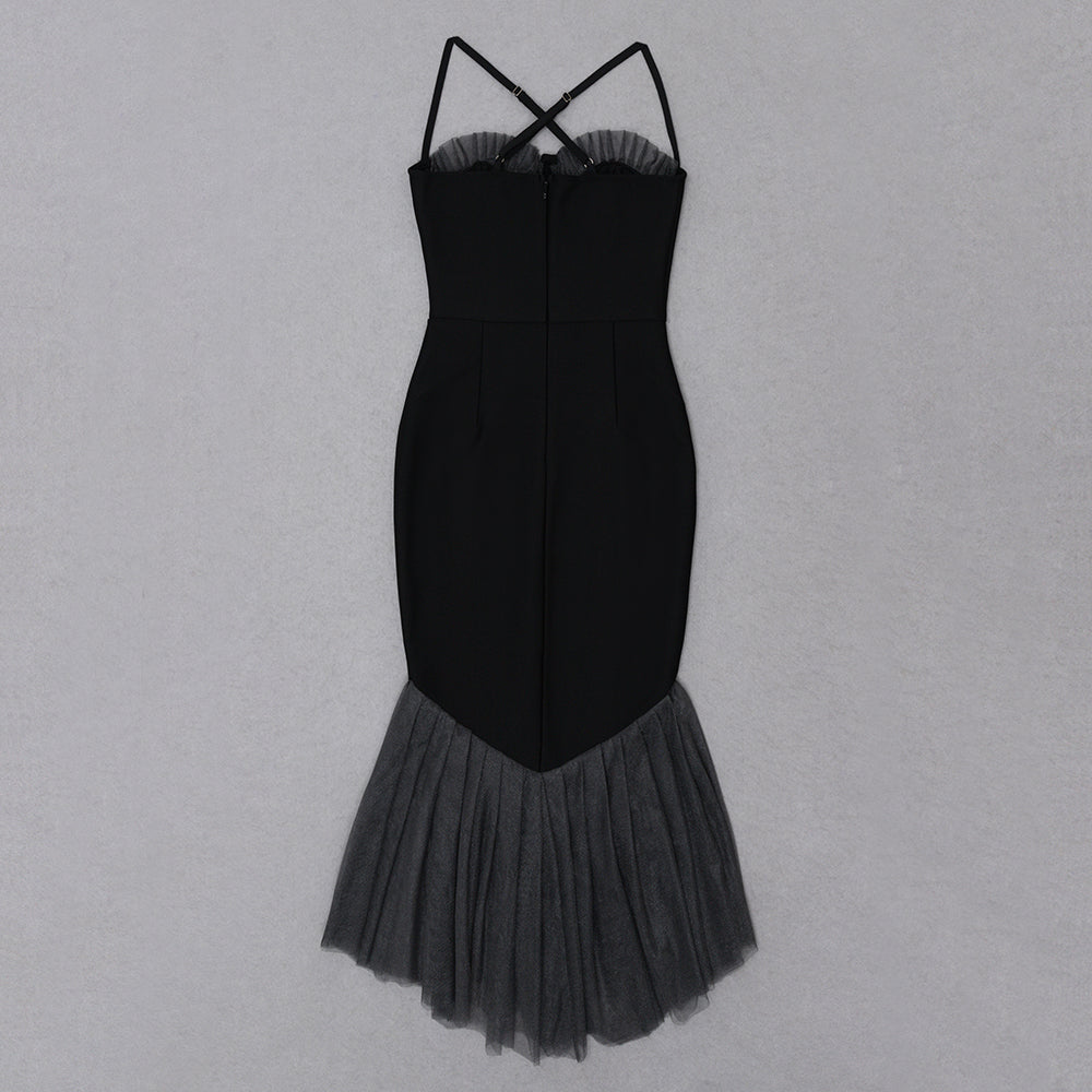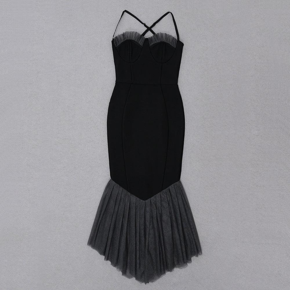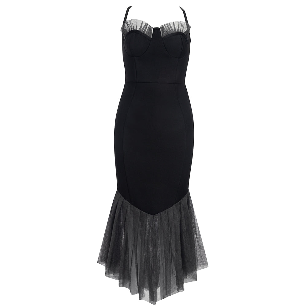 Halter Mesh Bustier Mermaid Midi Dress HV8569