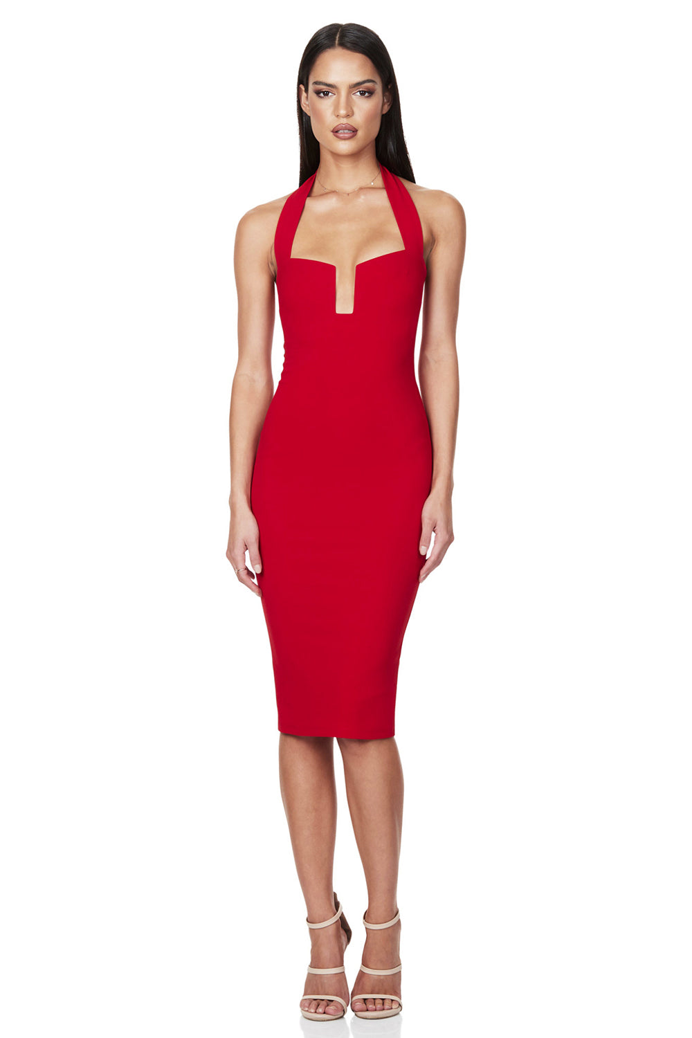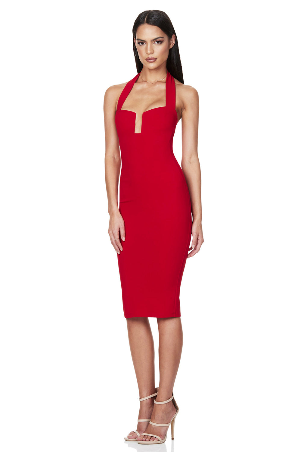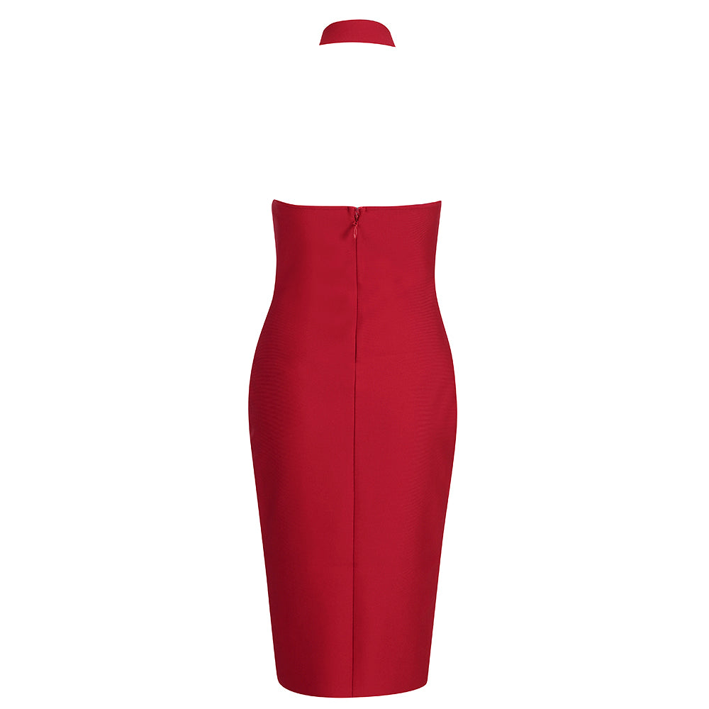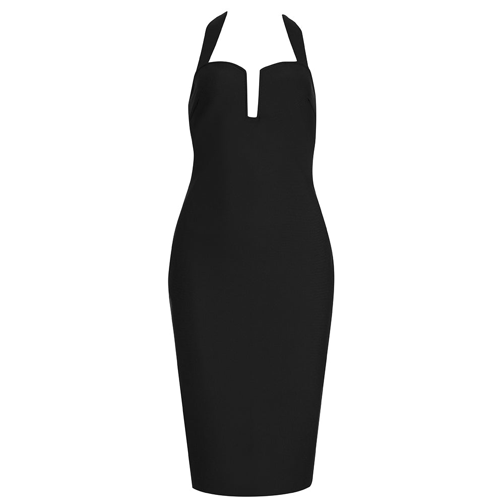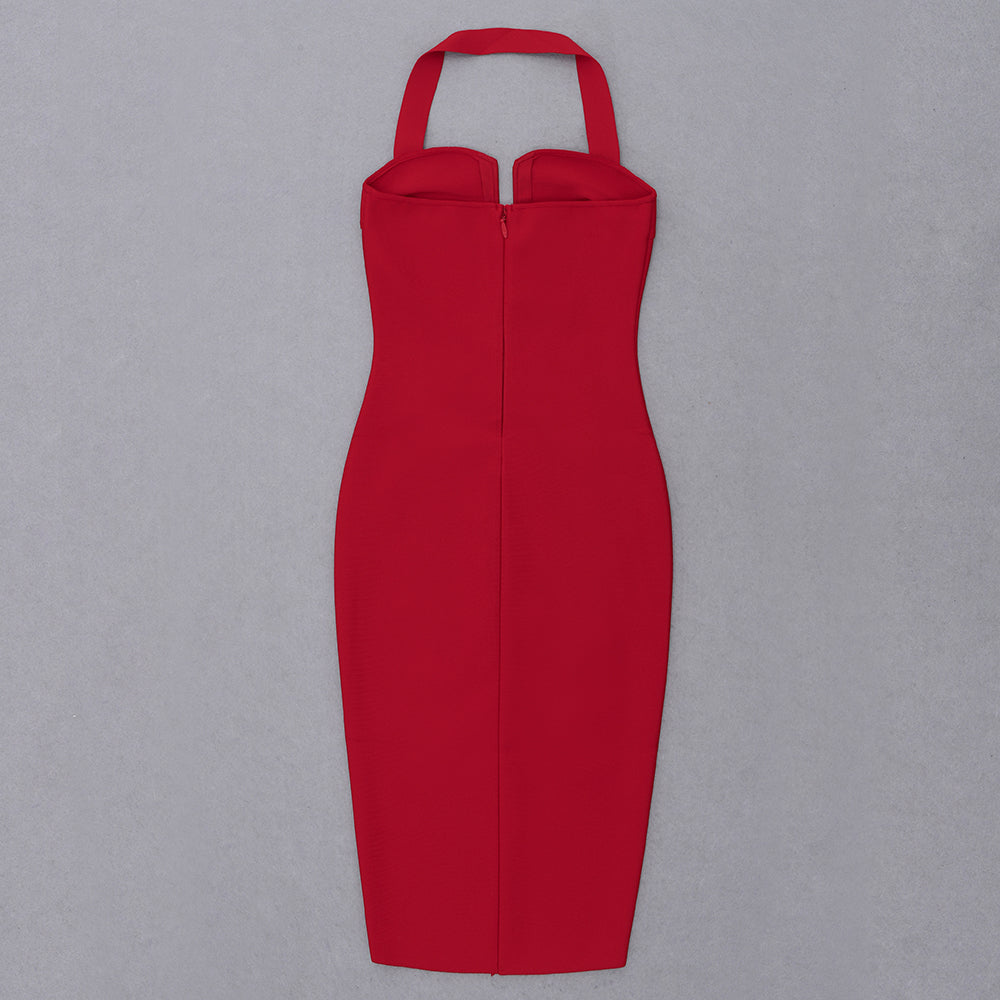 Halter Ribbed Bustier Midi Dress HV7906
