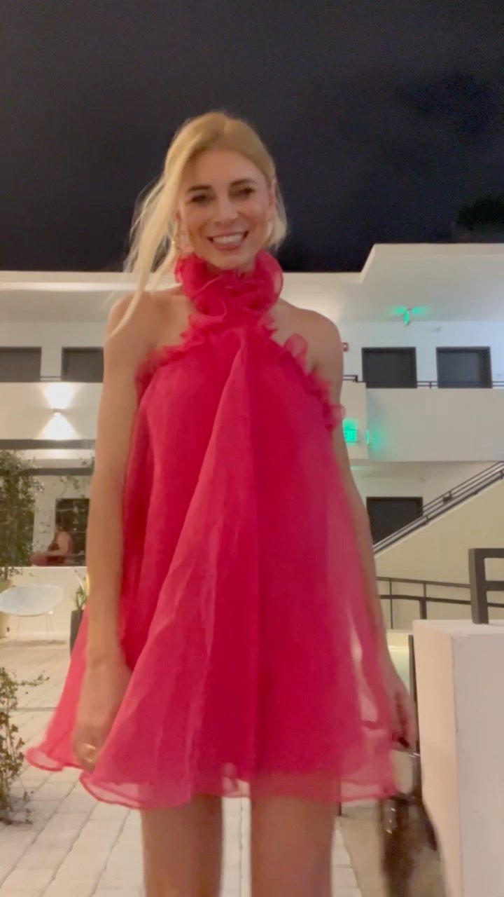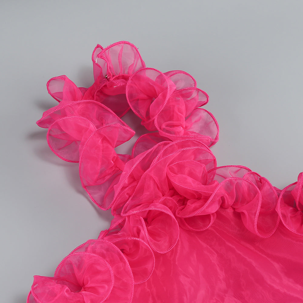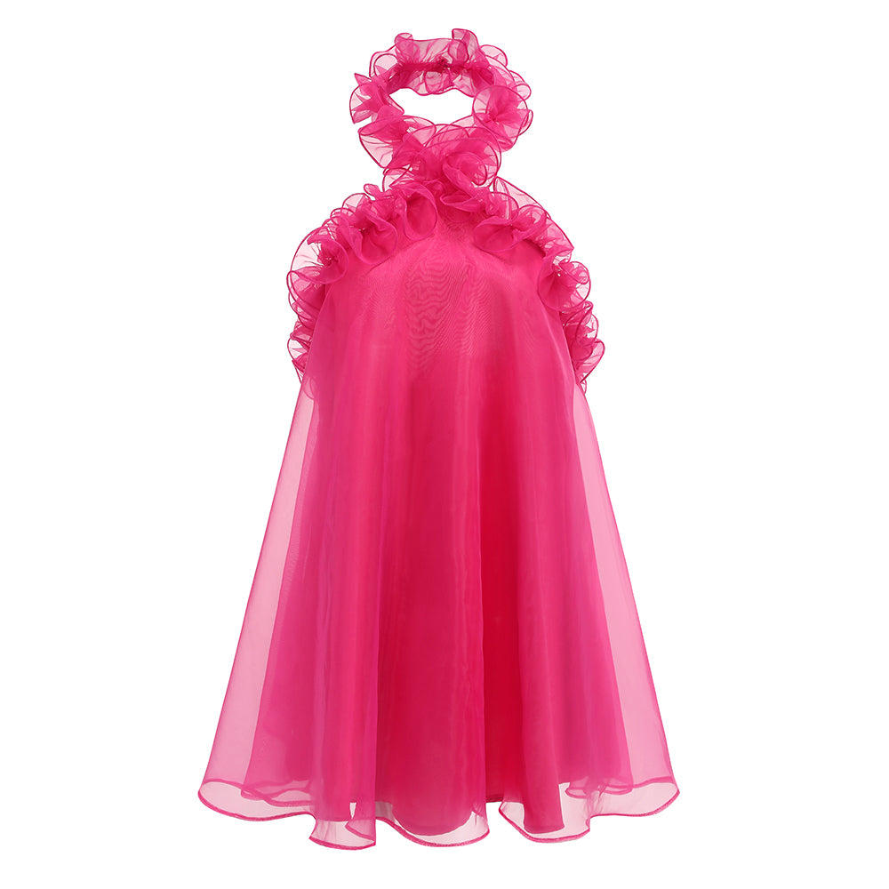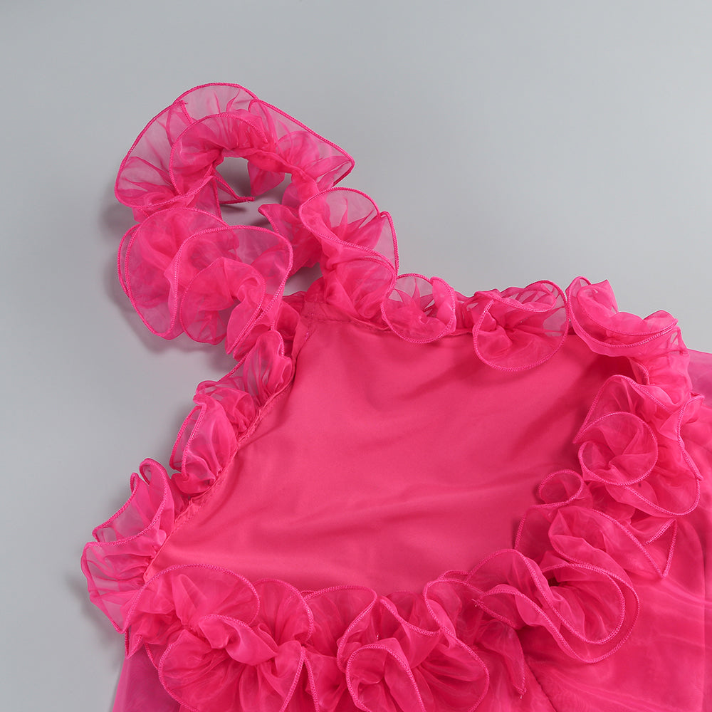 Halter Ruffle A Line Dress Hot Pink HV1344