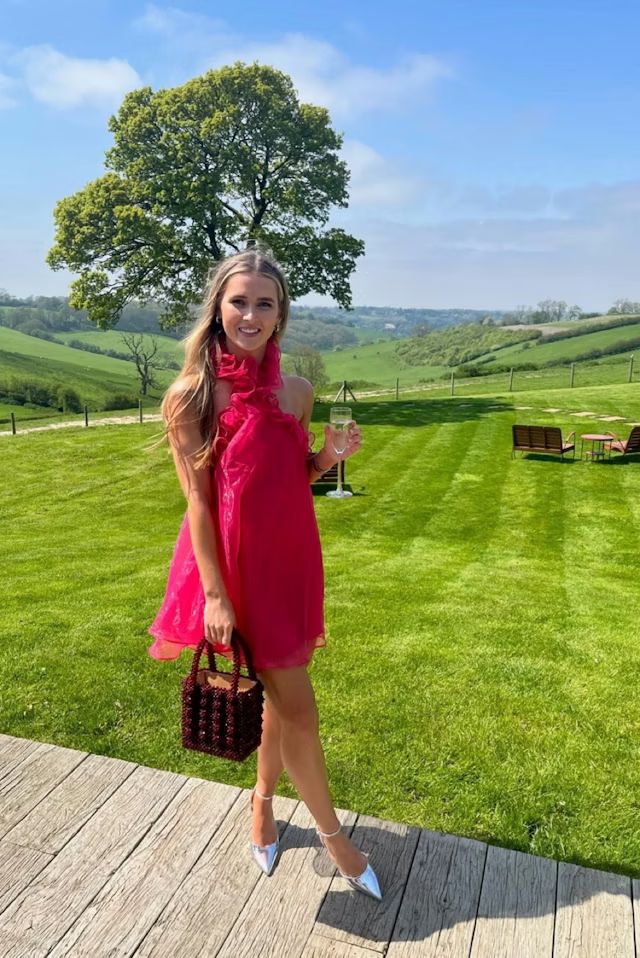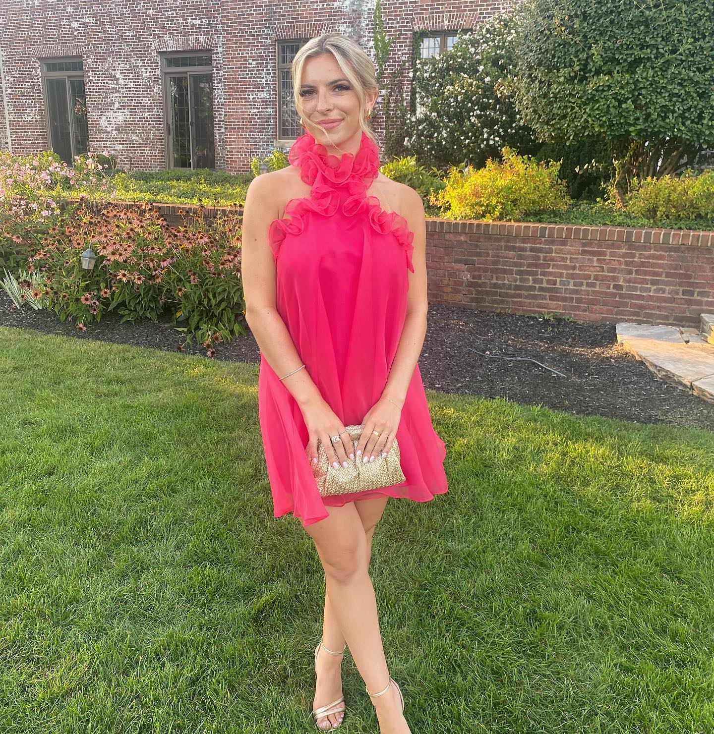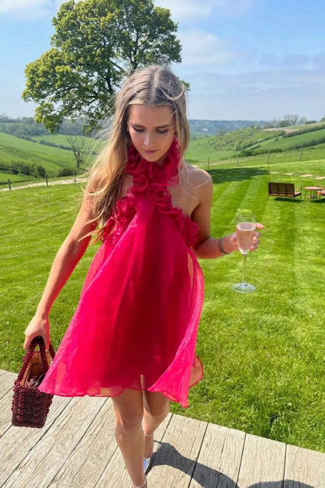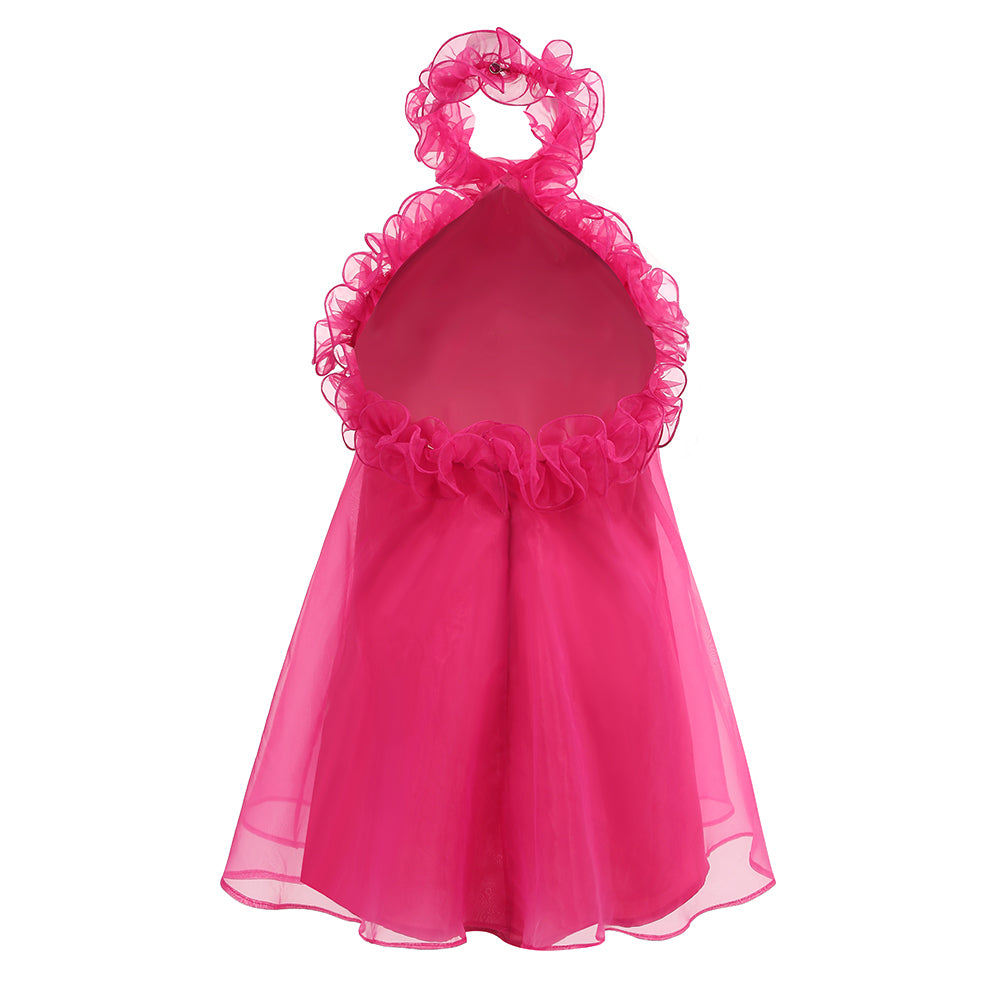 Halter Ruffle A Line Dress Hot Pink HV1344