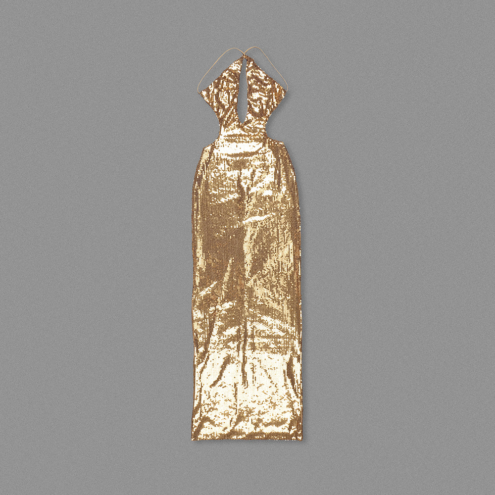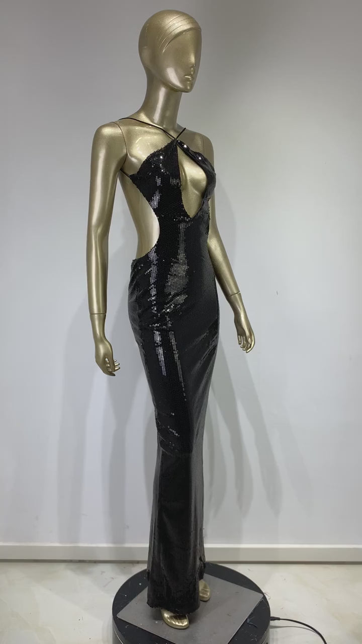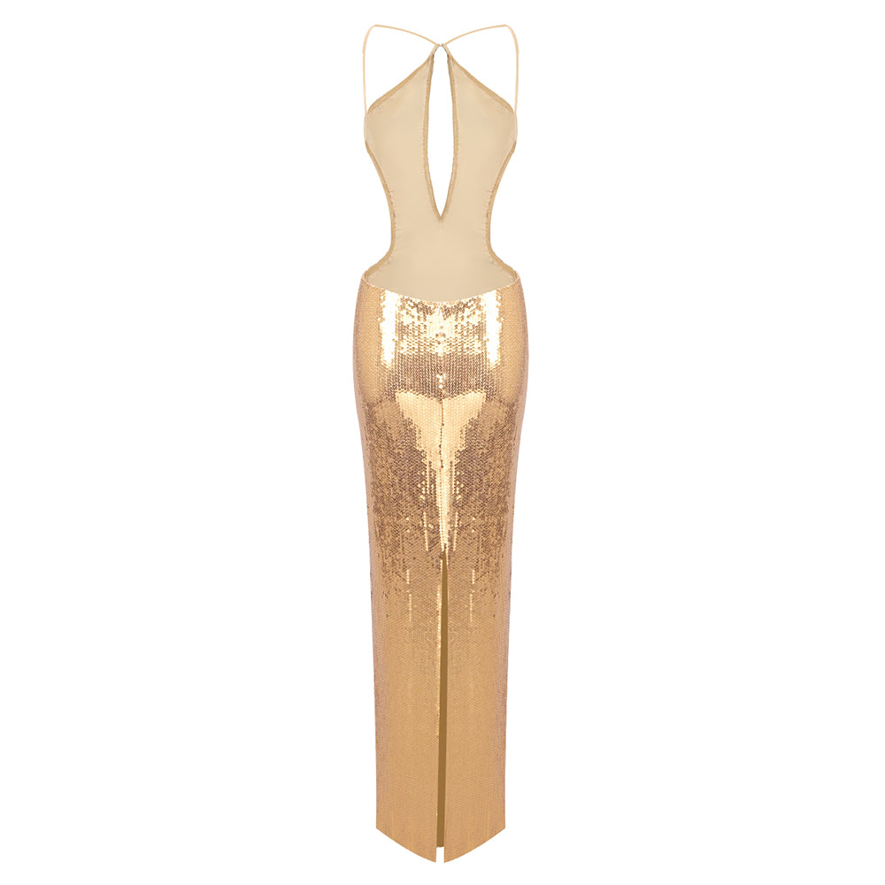 Halter Sequin Backless Maxi Dress Gold HV9660