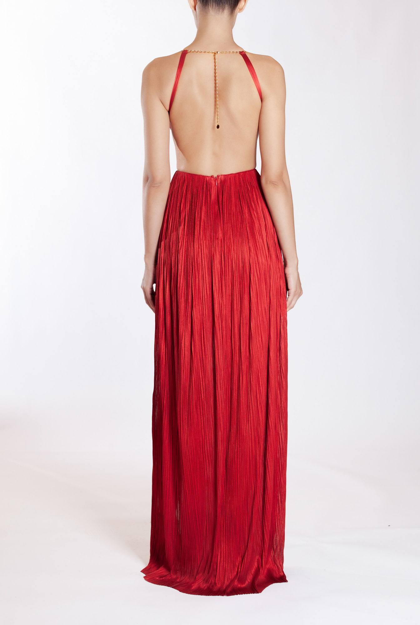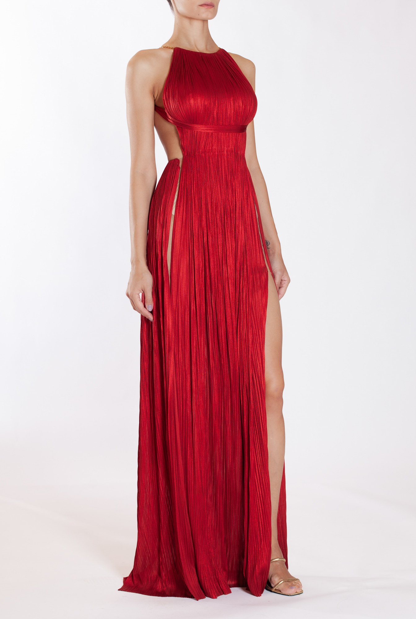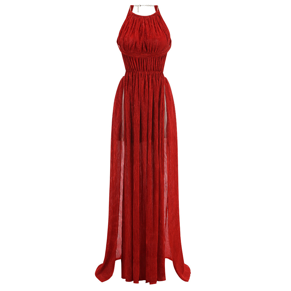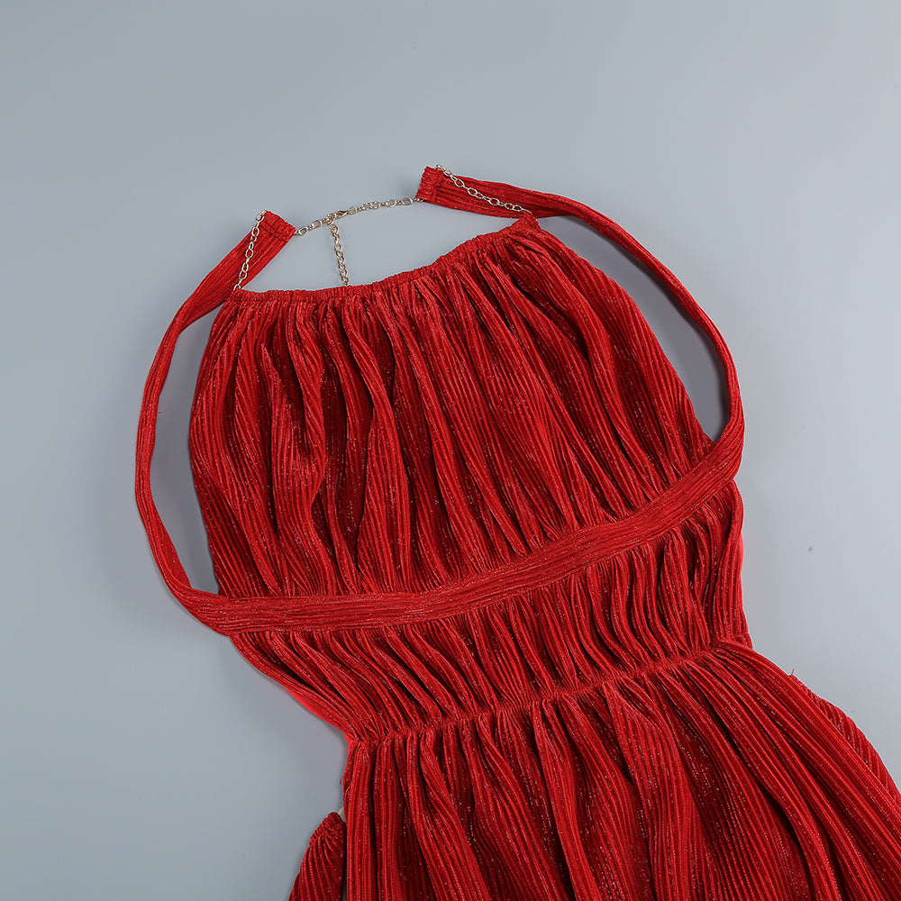 Halter Sparkly Pleated Maxi Dress Red HV1937