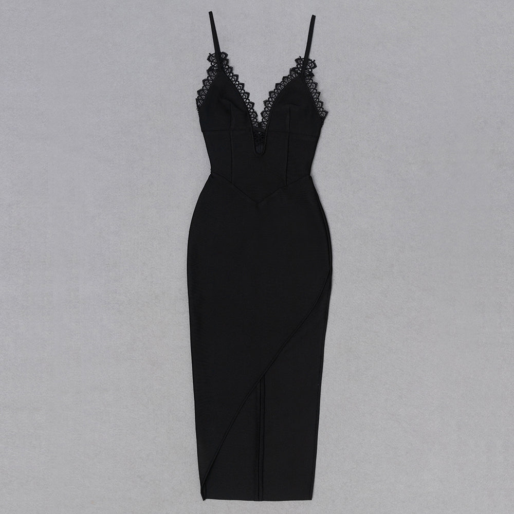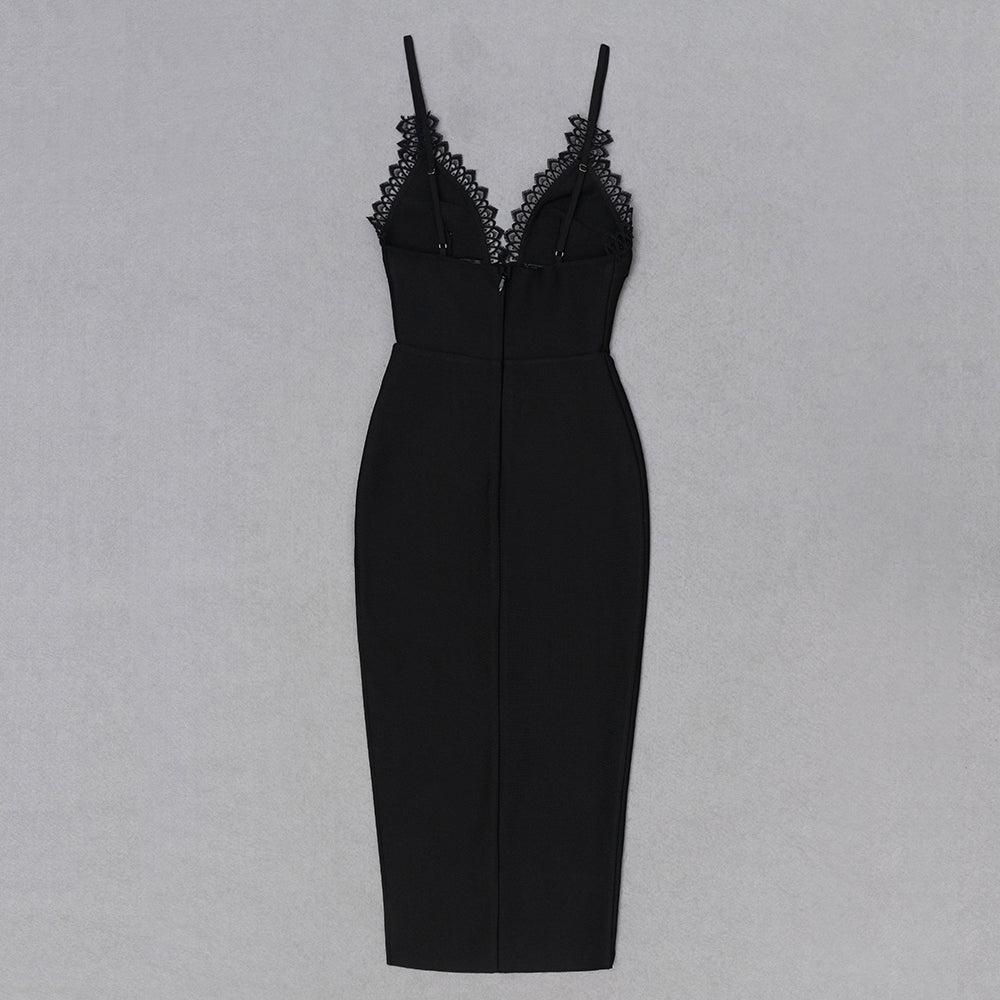 Lace Insert Asymmetric Midi Dress Black HV8509