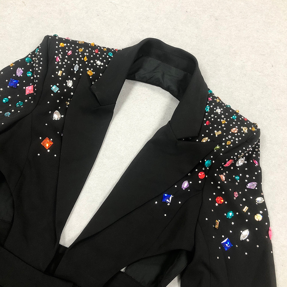 Long Sleeve Crystal Backless Jumpsuit Black HV1472