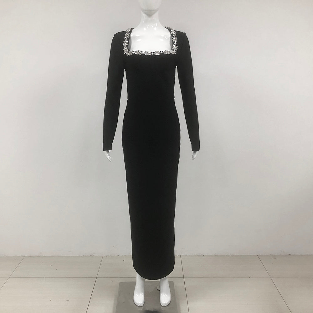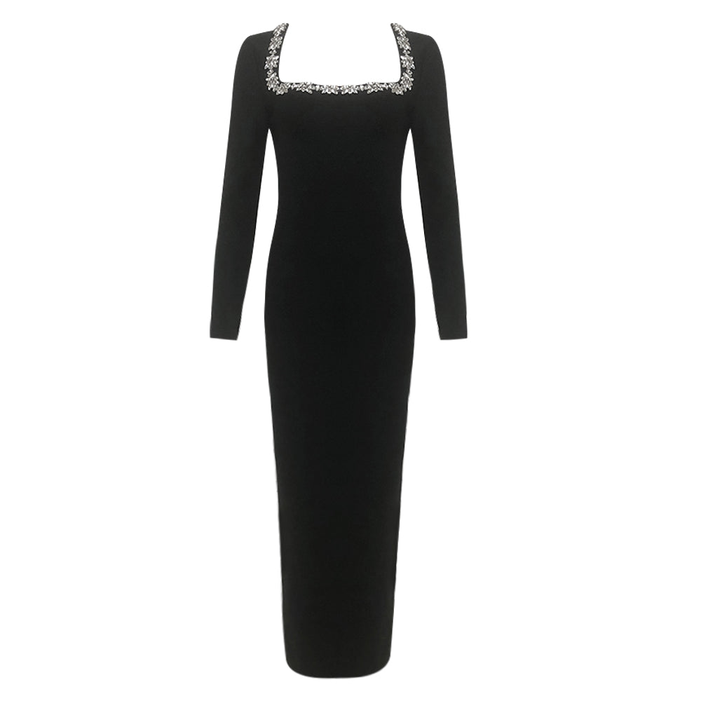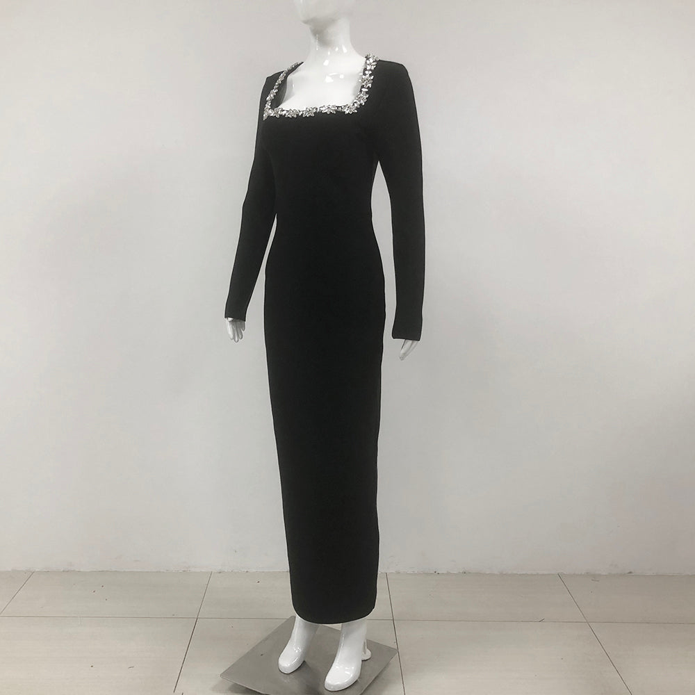 Long Sleeve Crystal Maxi Dress Black HV1807