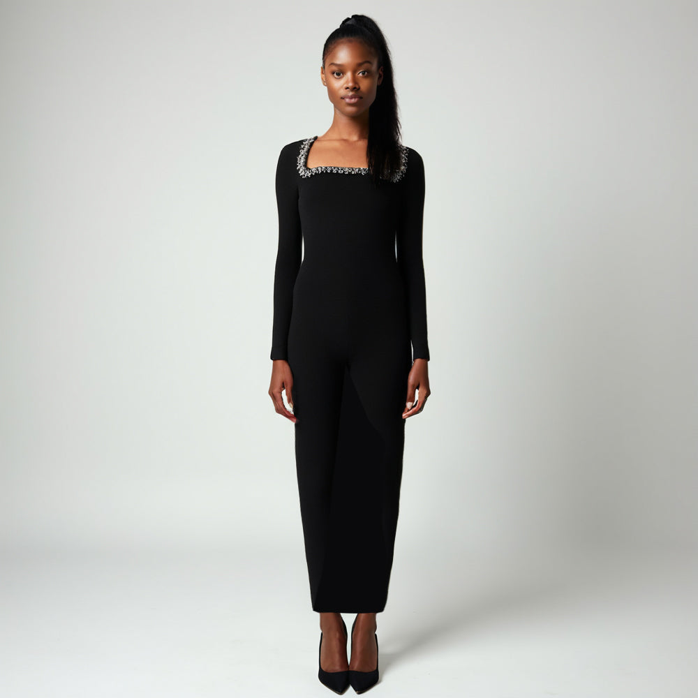 Long Sleeve Crystal Maxi Dress Black