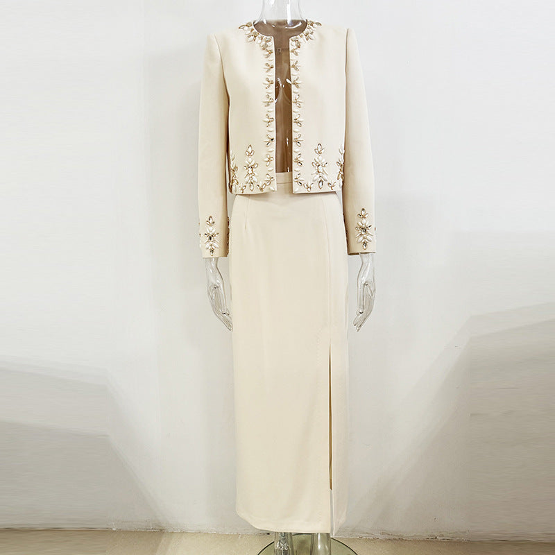 Long Sleeve Crystal Maxi Two Piece Set Ivory