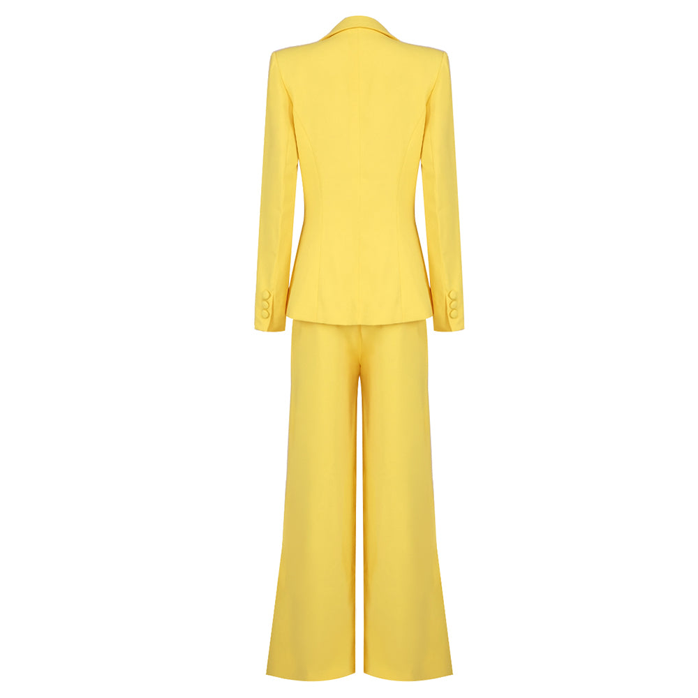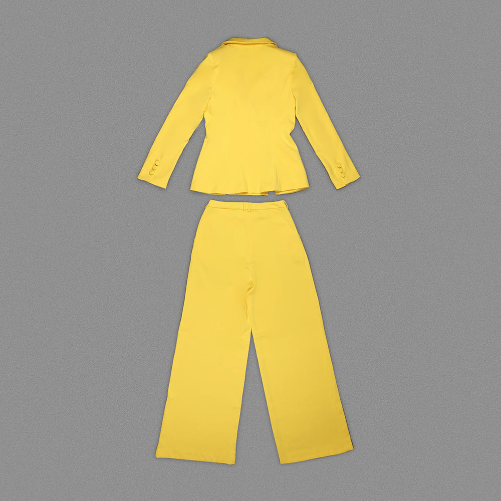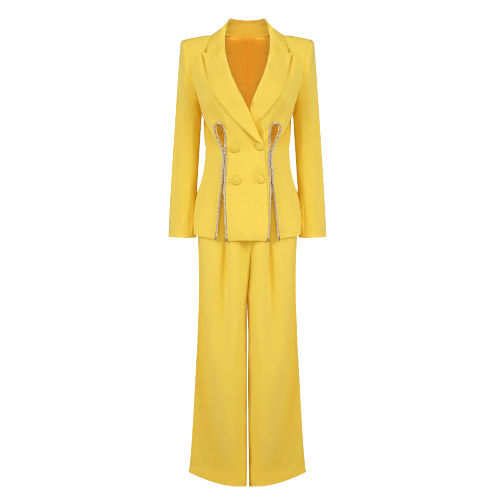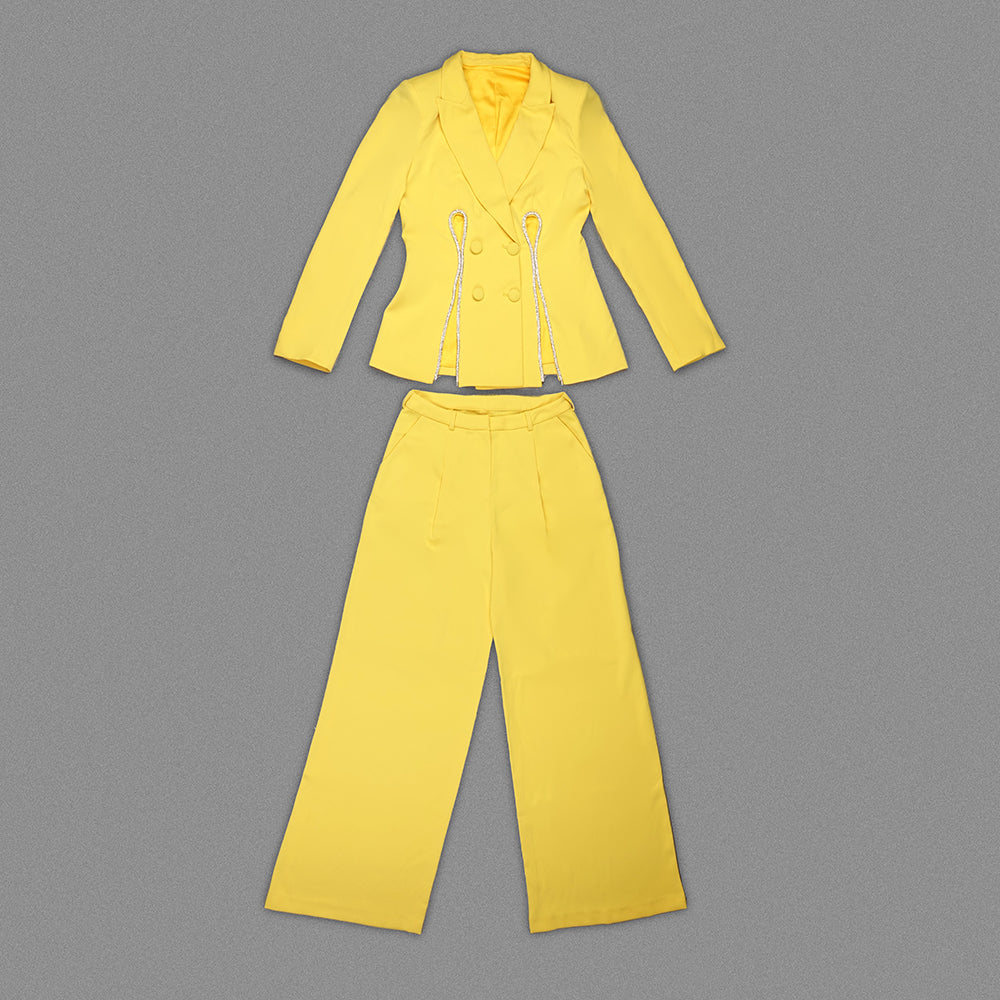 Long Sleeve Crystal Trim Suit Yellow