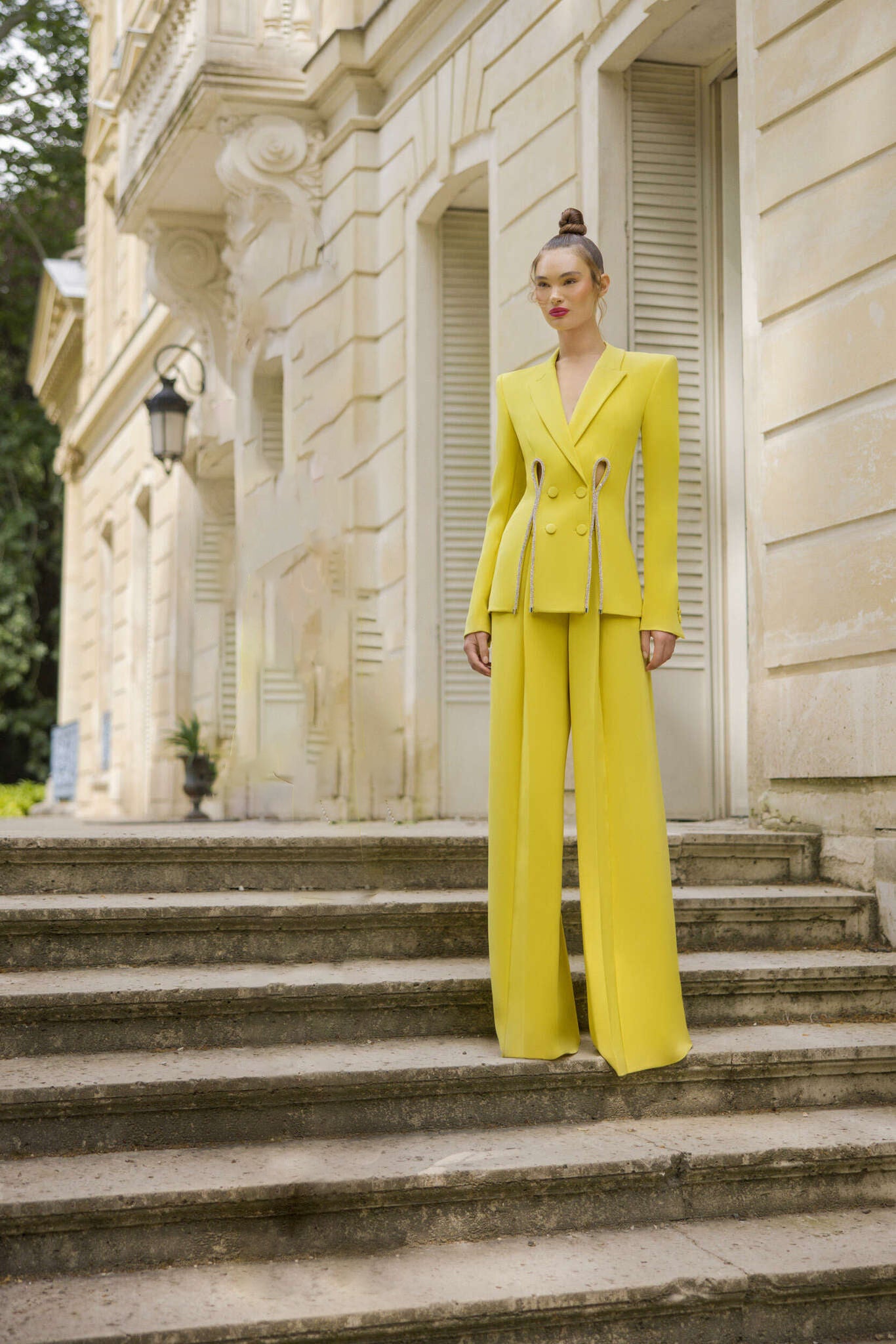 Long Sleeve Crystal Trim Suit Yellow HV9927
