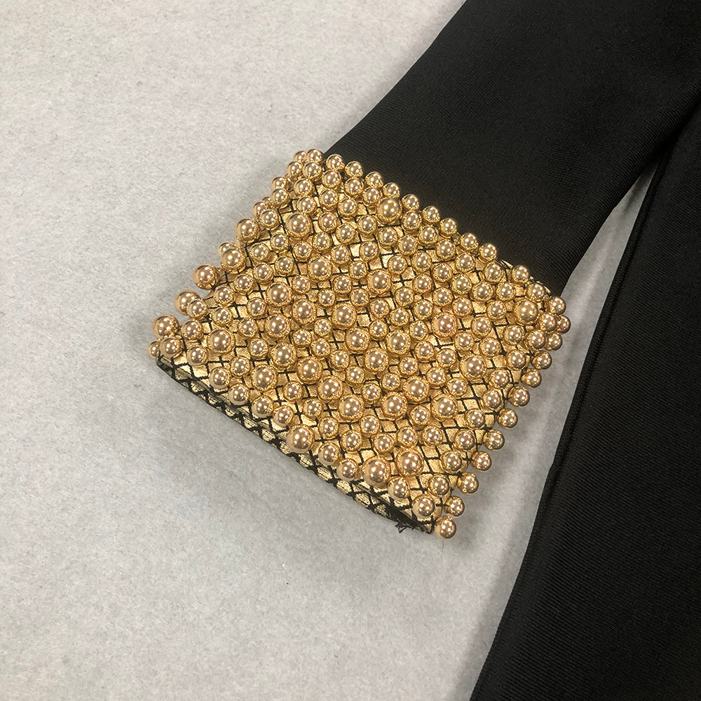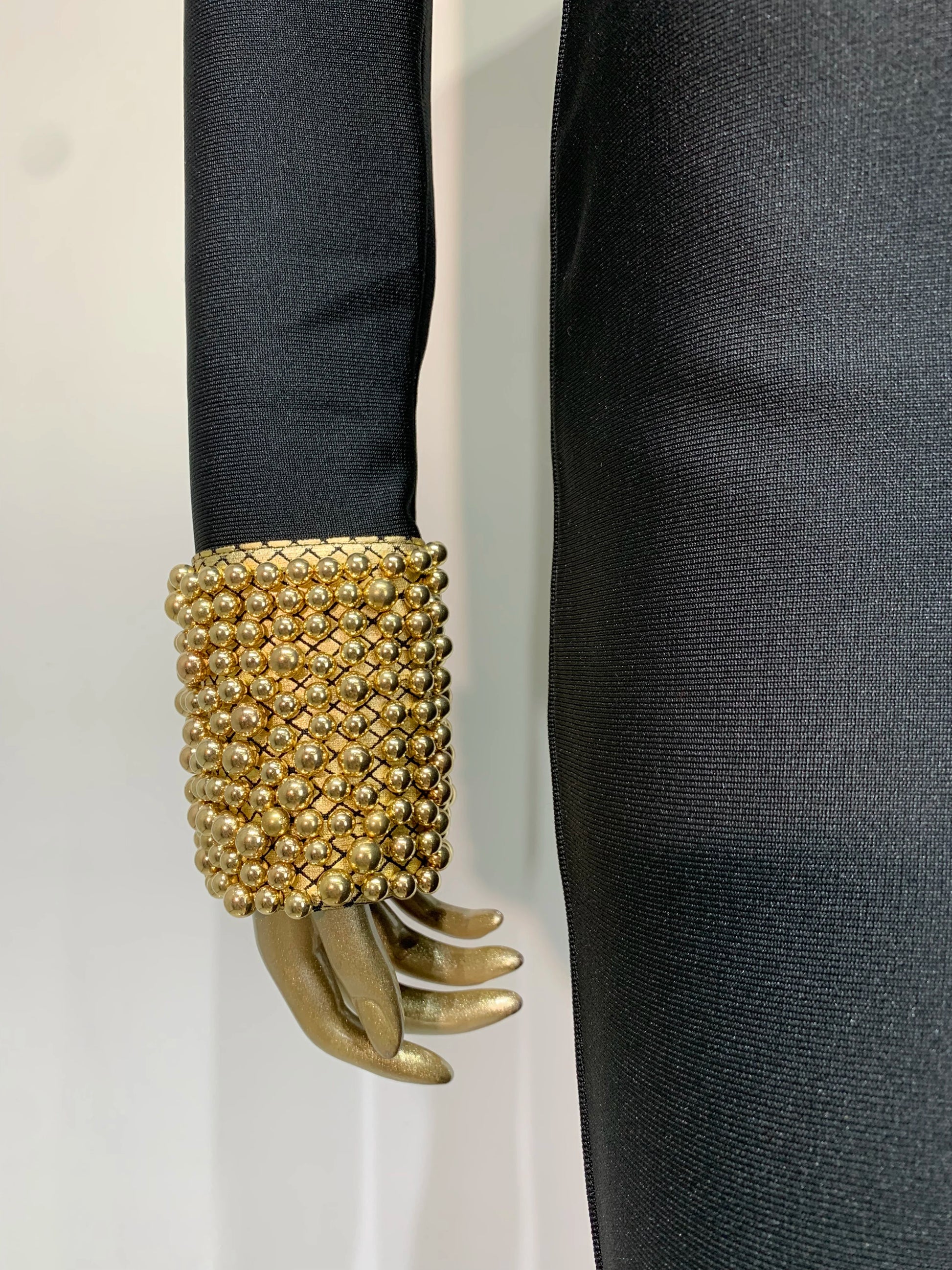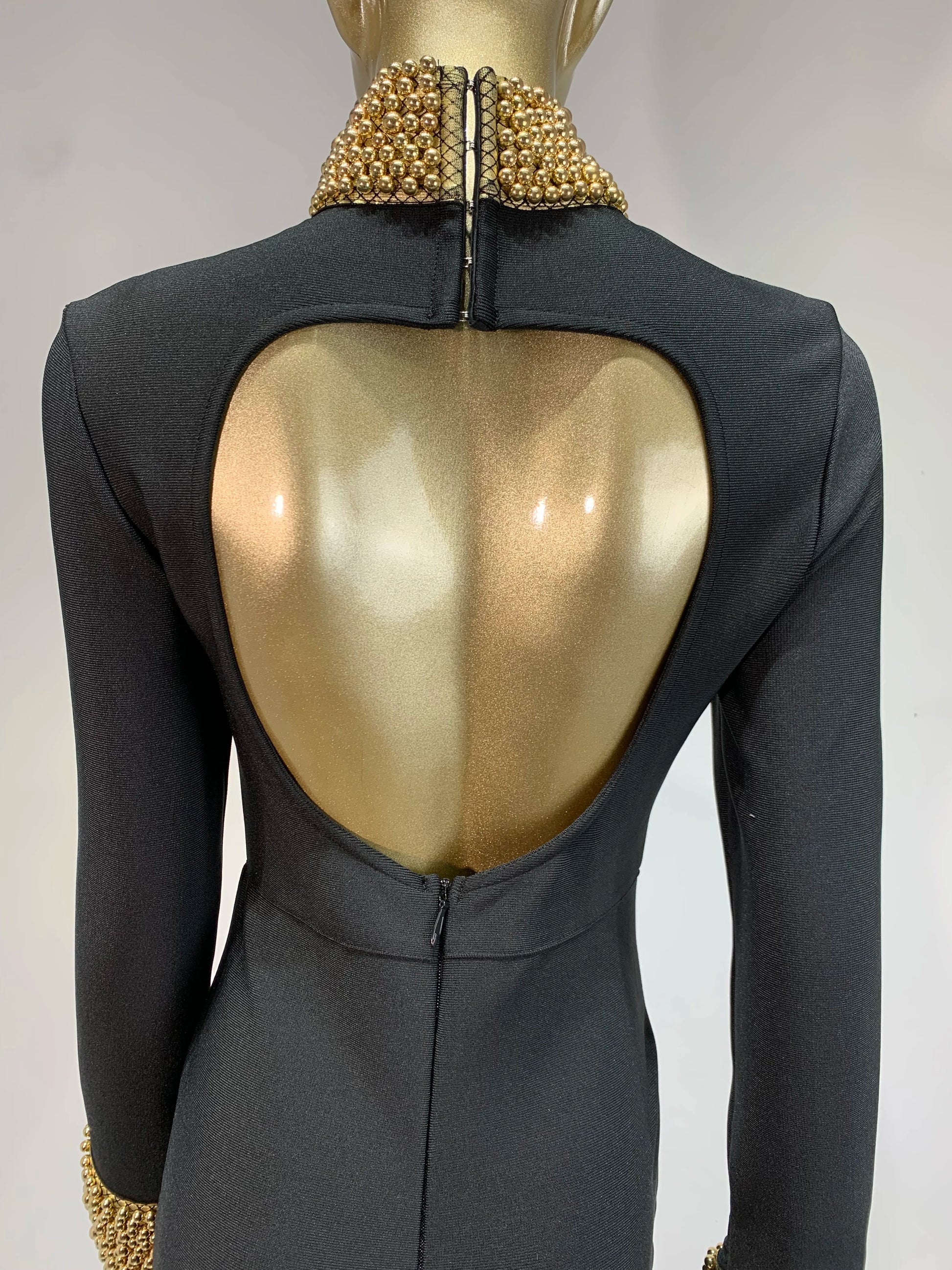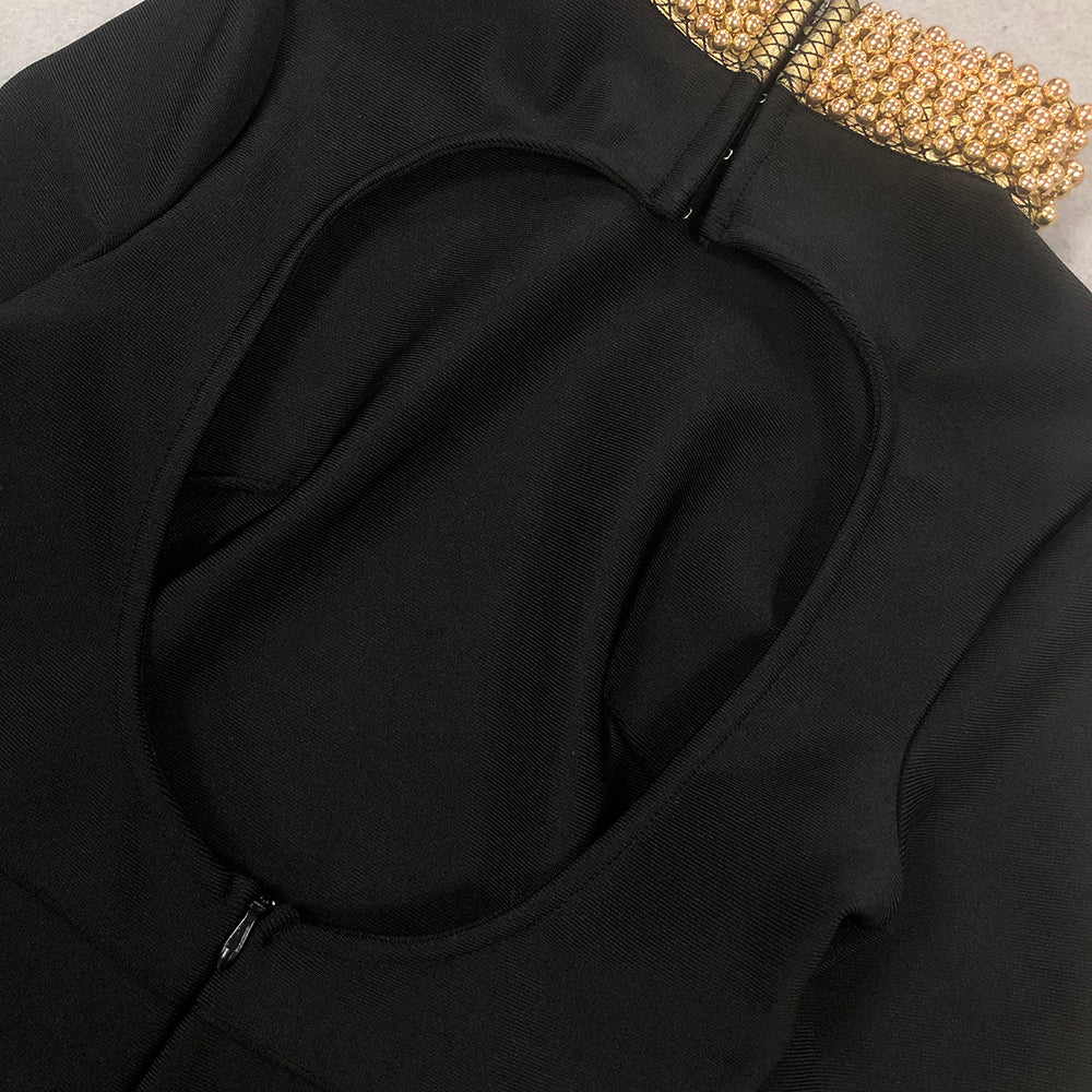 Long Sleeve Embellished Backless Maxi Dress Black HV1739