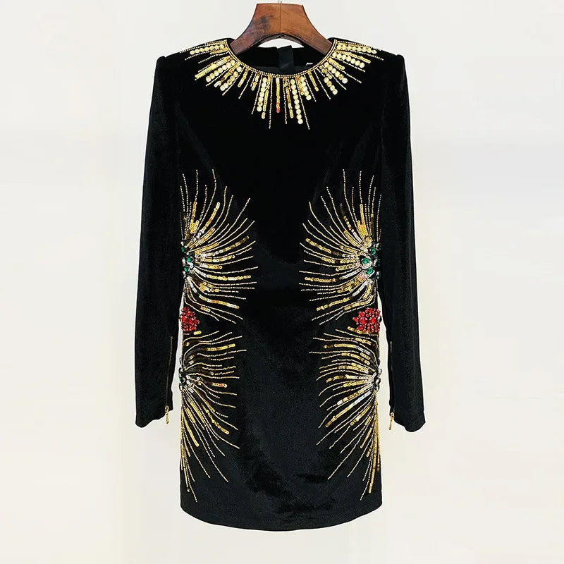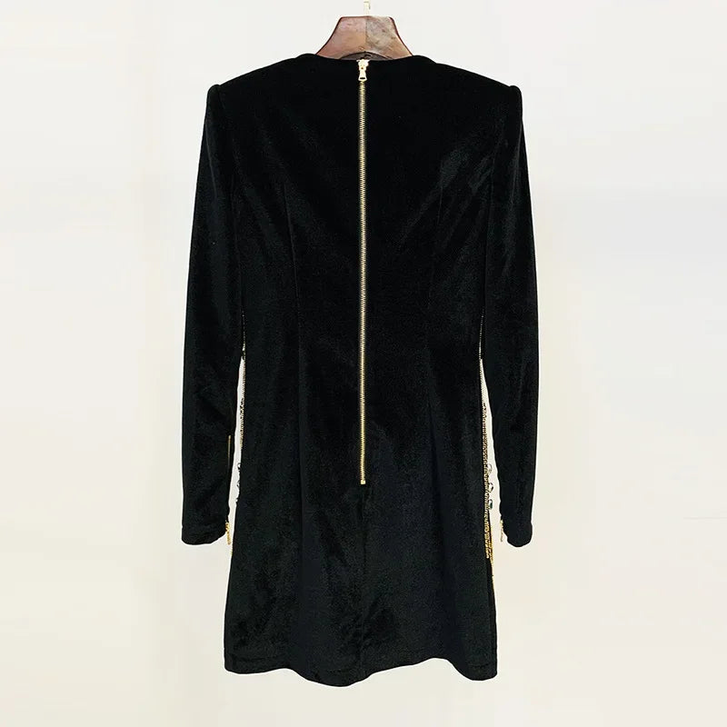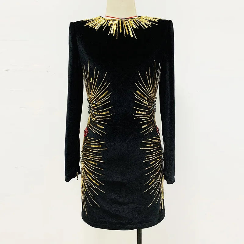 Long Sleeve Embellished Velvet Dress Black