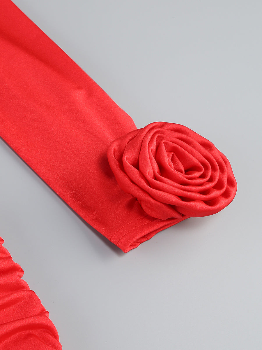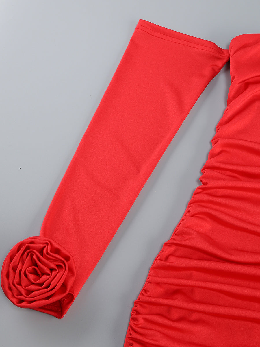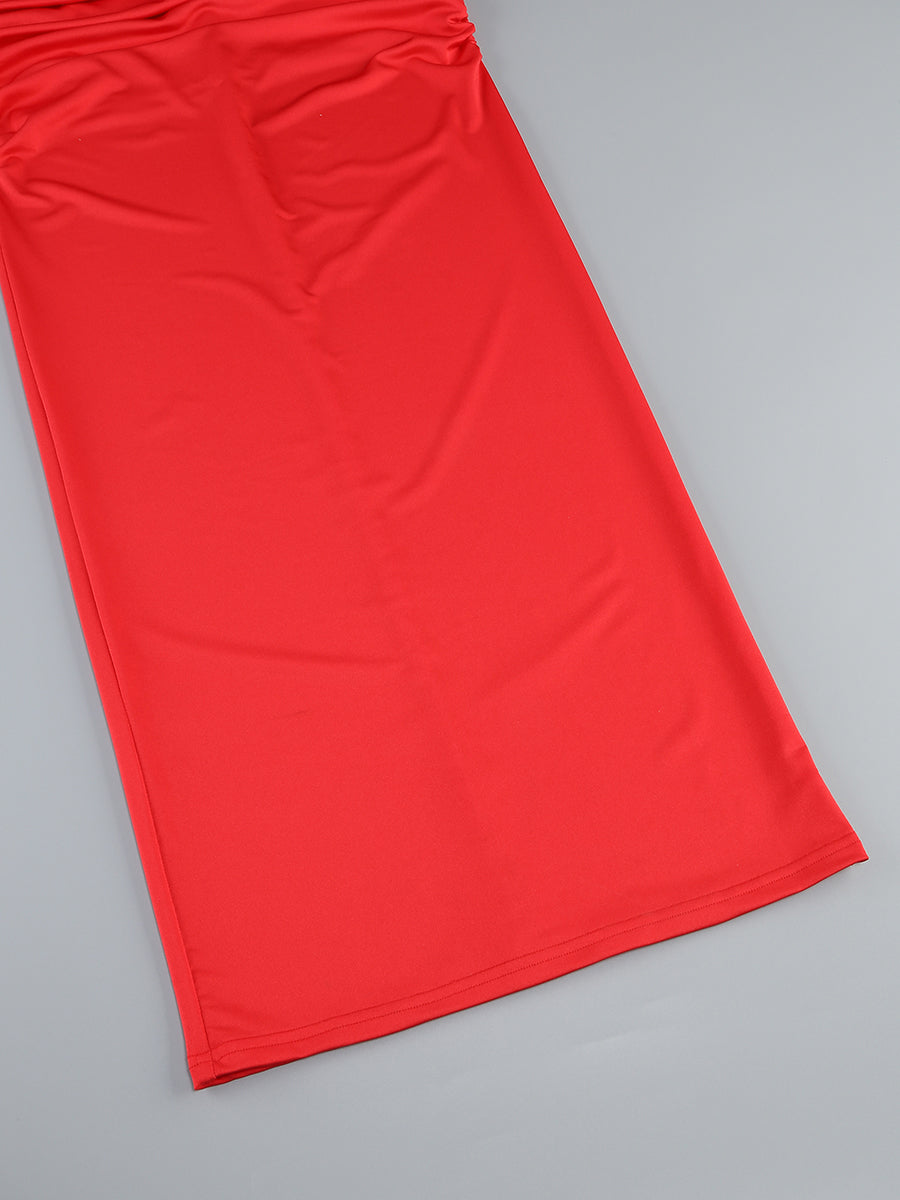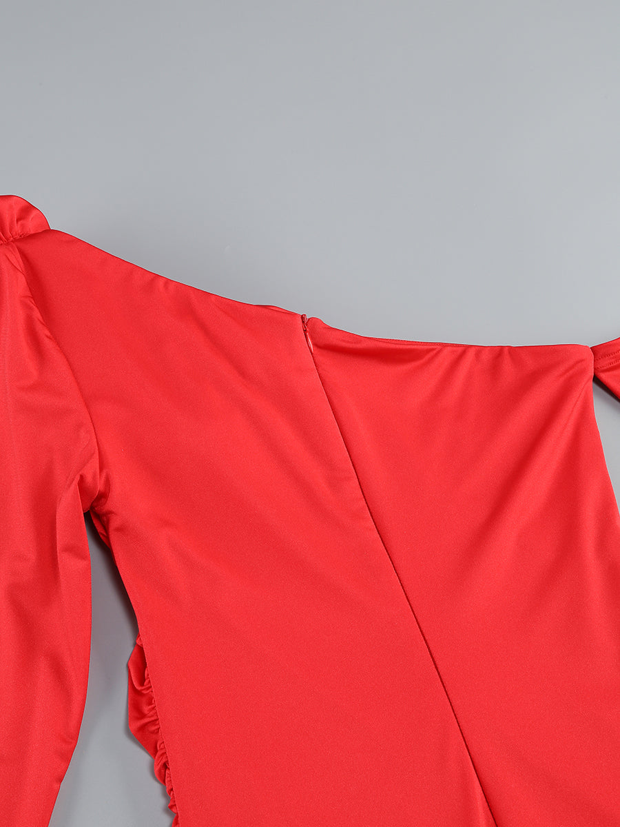 Long Sleeve Floral Bardot Maxi Dress Red